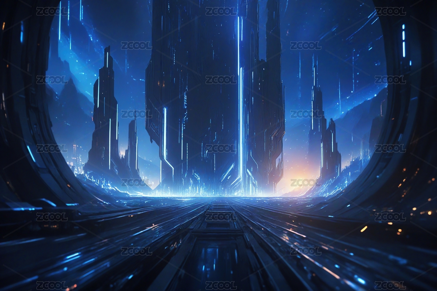 建筑,城市,科幻,未来,蓝色,外景,高架,工业风,炫光,天空