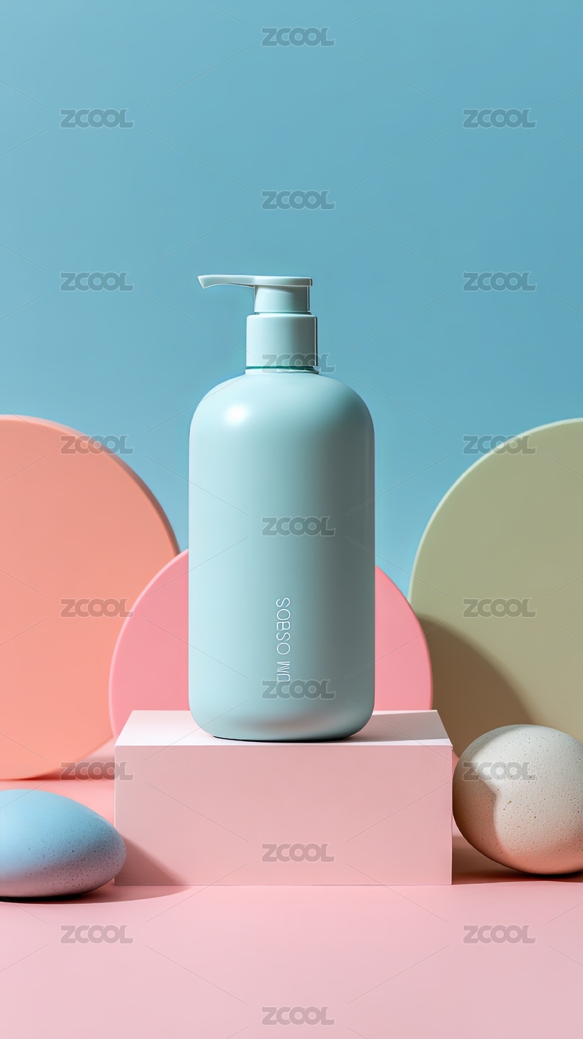洗面奶,白色瓶子,绿色圆台,背景,清洁护肤