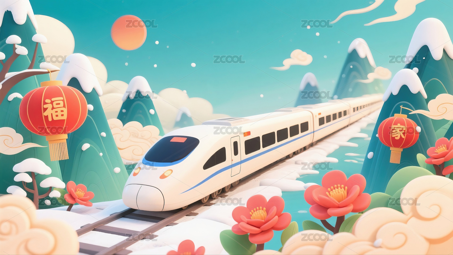 中国高铁与祥云灯笼
