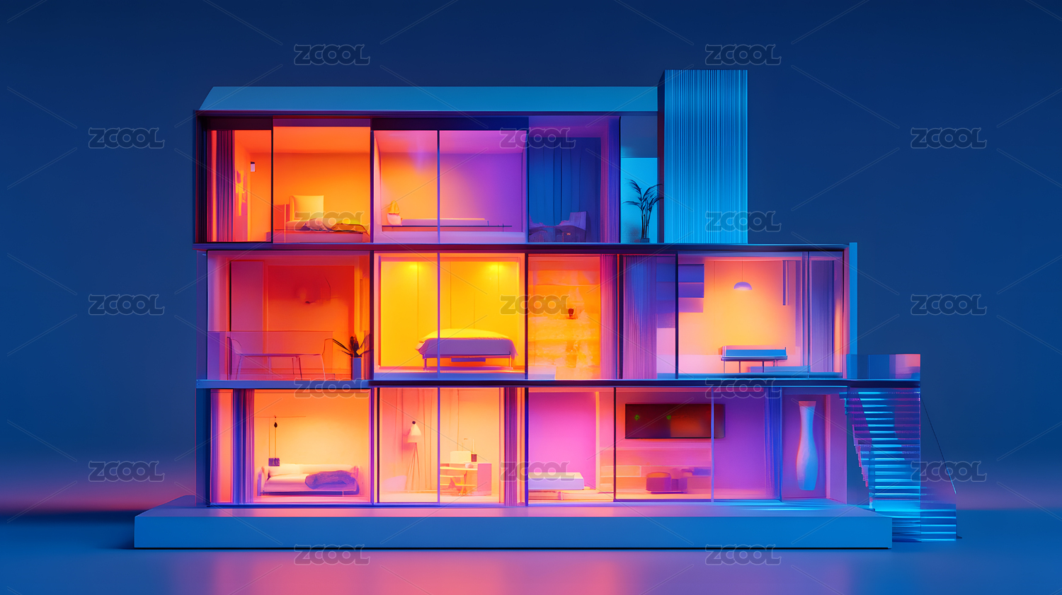 3D,三维,立体,科技感,家居,场景,厨房,卧室,客厅,公寓