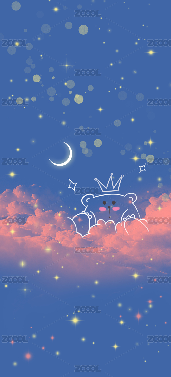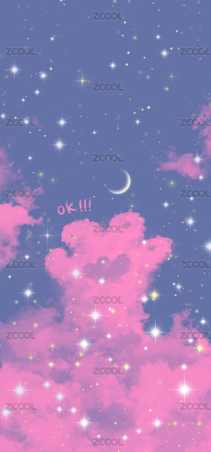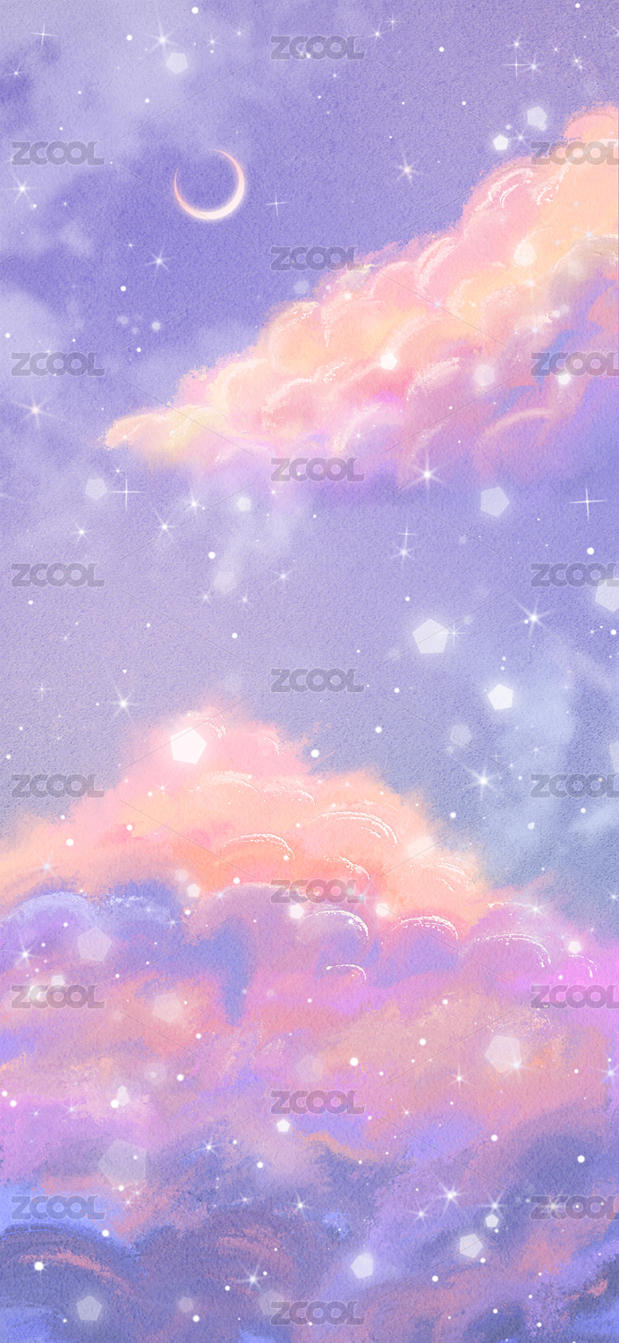 晚霞天空星空云朵插画