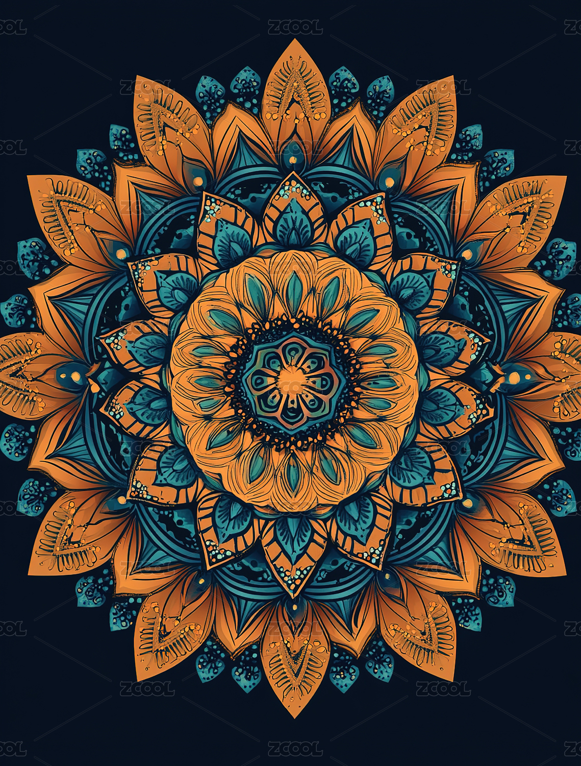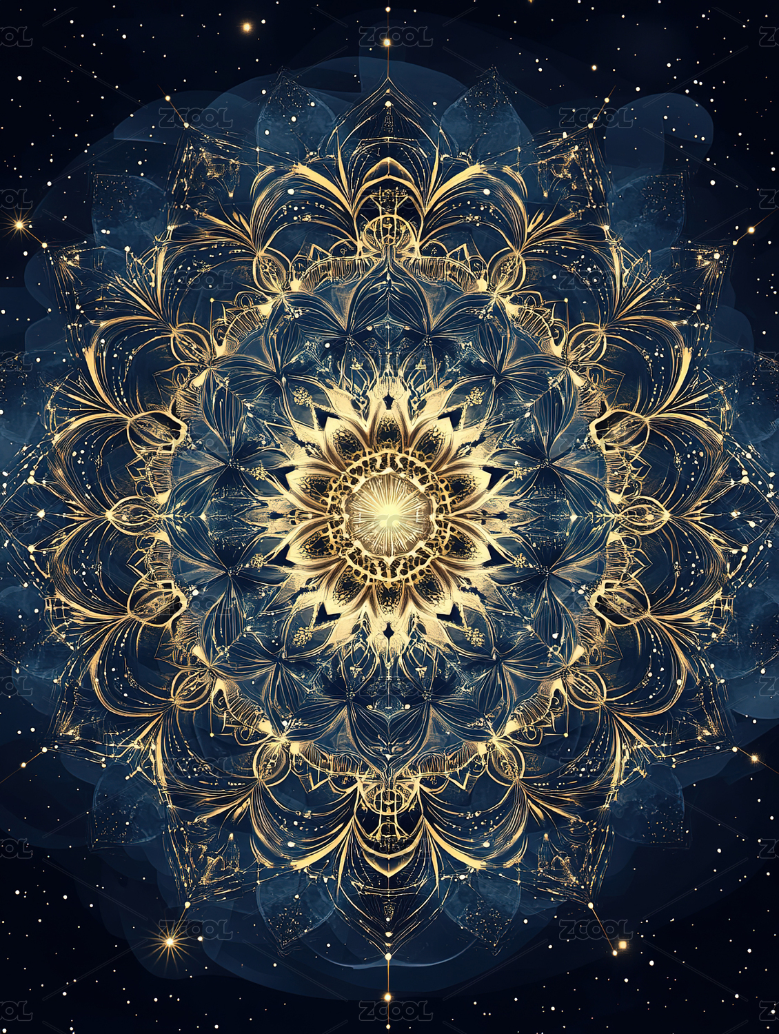 蓝金曼陀罗花纹图案