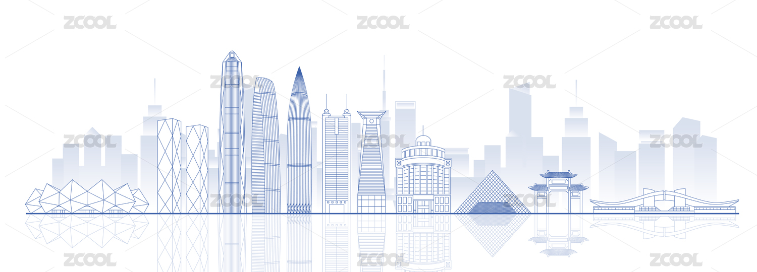 深圳城市地标建筑蓝色线稿矢量插画海报