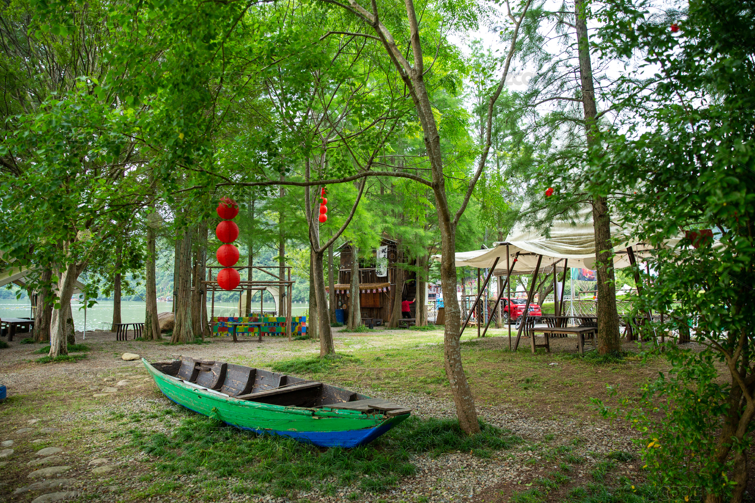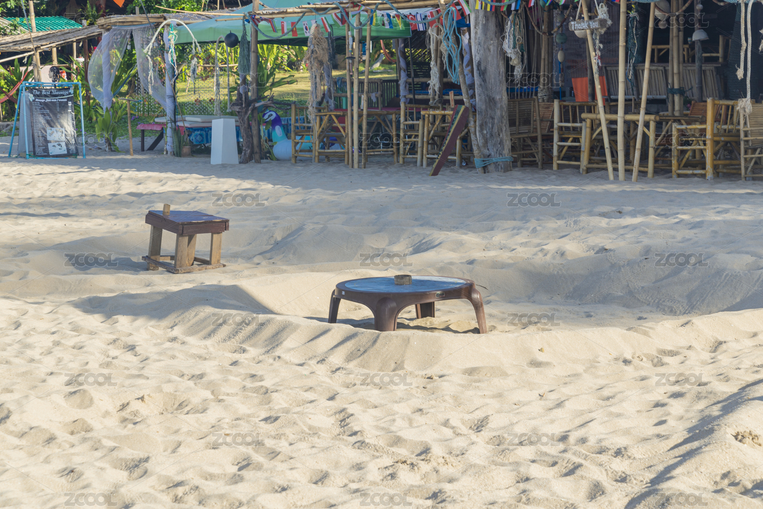 泰国甲米的兰塔岛的海岸沙滩上的木桌