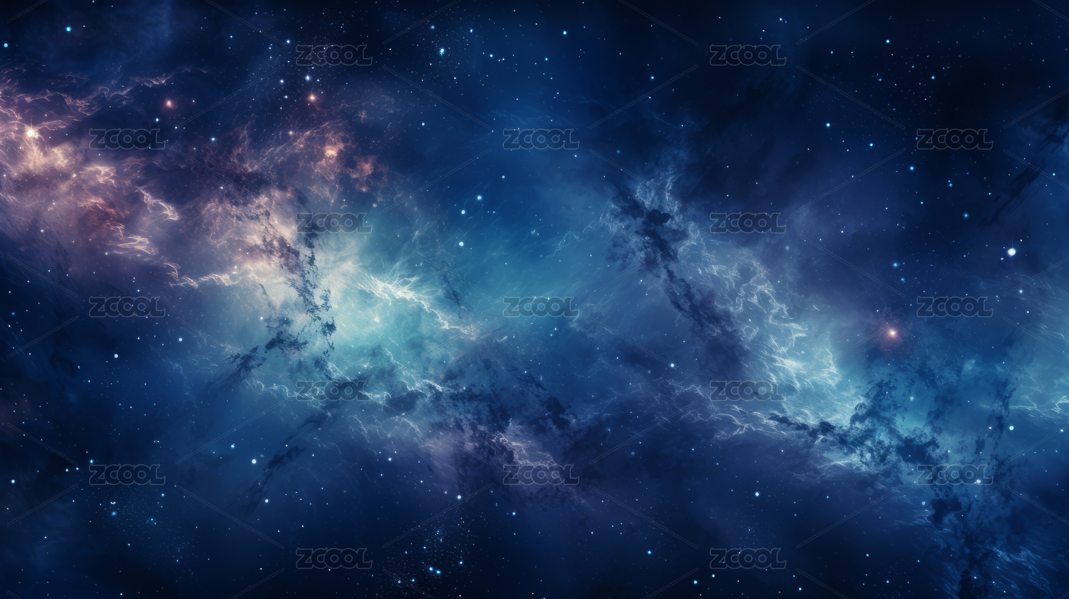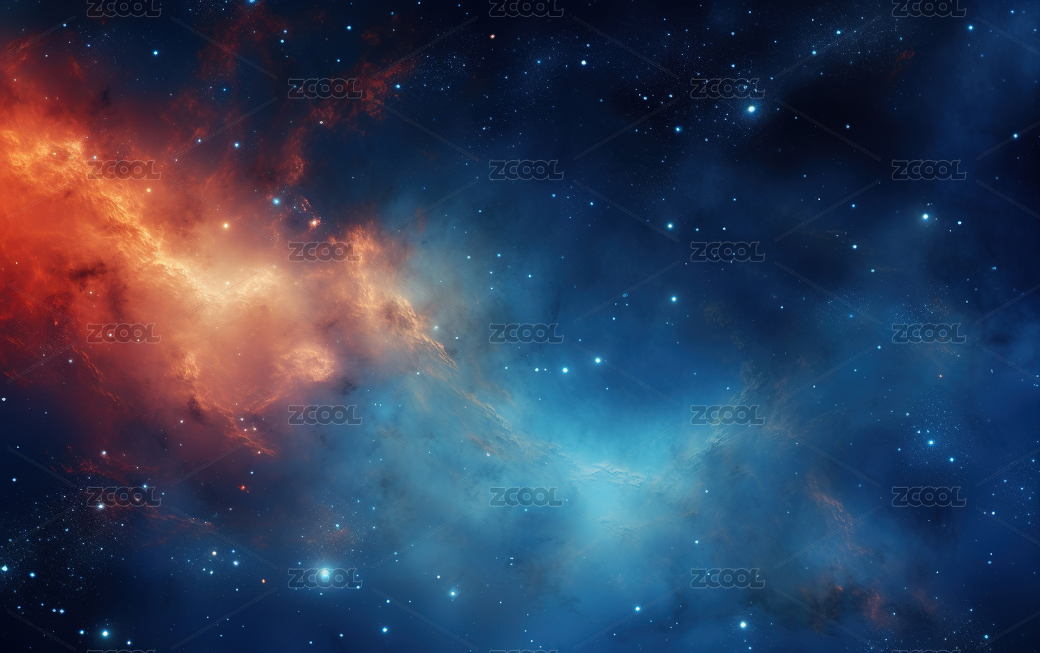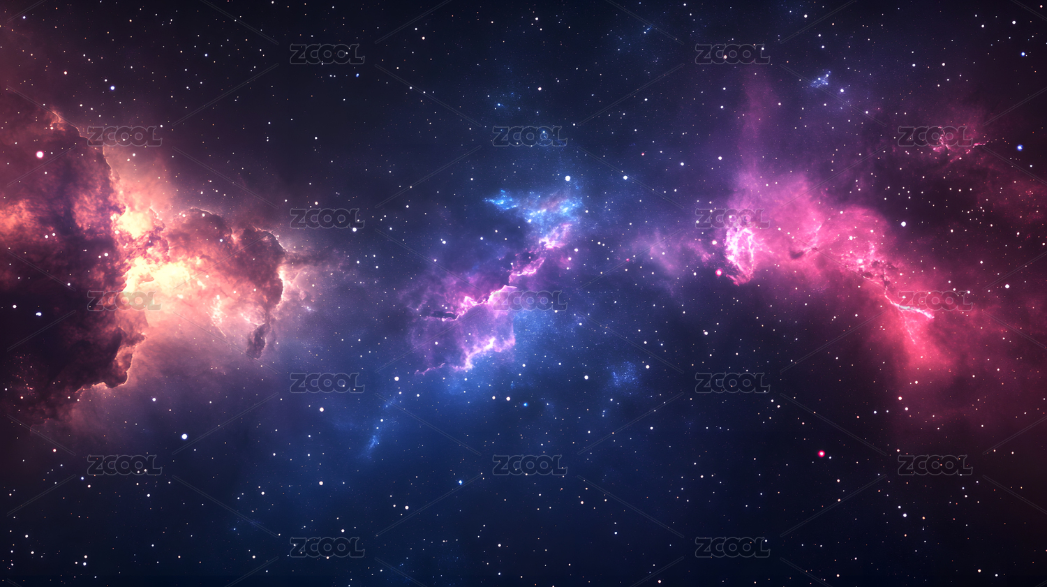 五颜六色的宇宙星云笼罩在太空尘埃中,天体