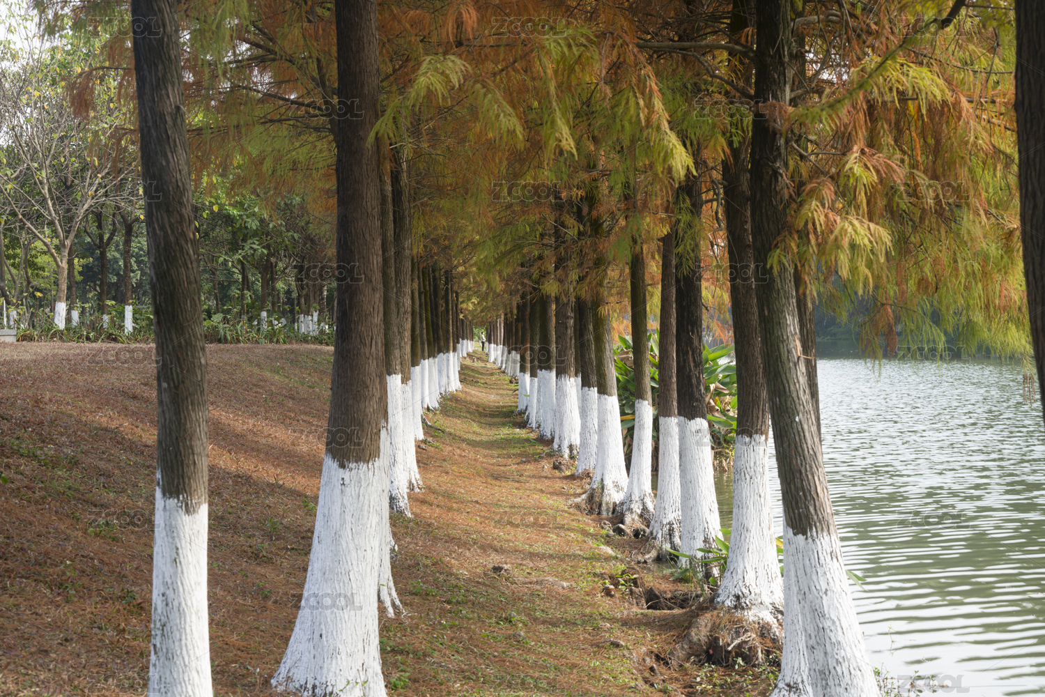 中国广东东莞中央群岛公园,秋天落羽杉风光