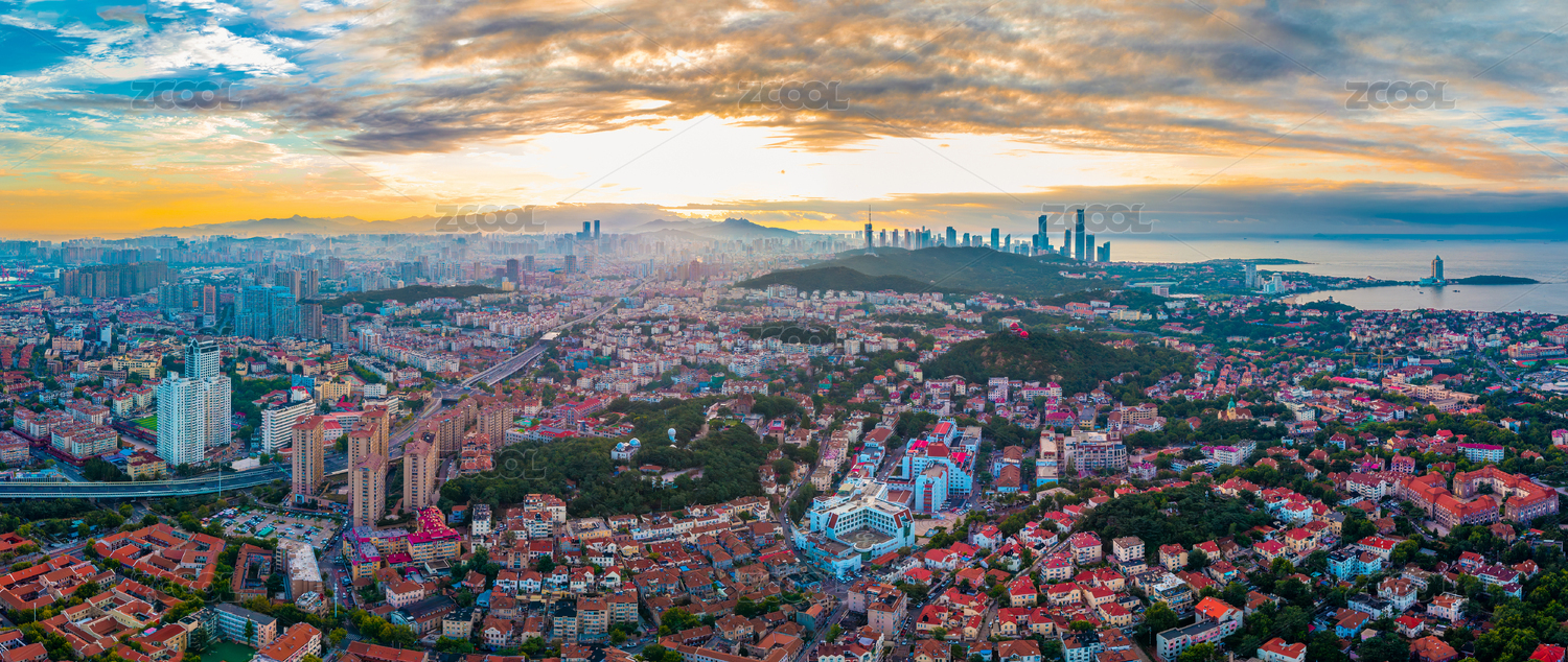 航拍中国山东青岛湾红房顶和欧式建筑景观