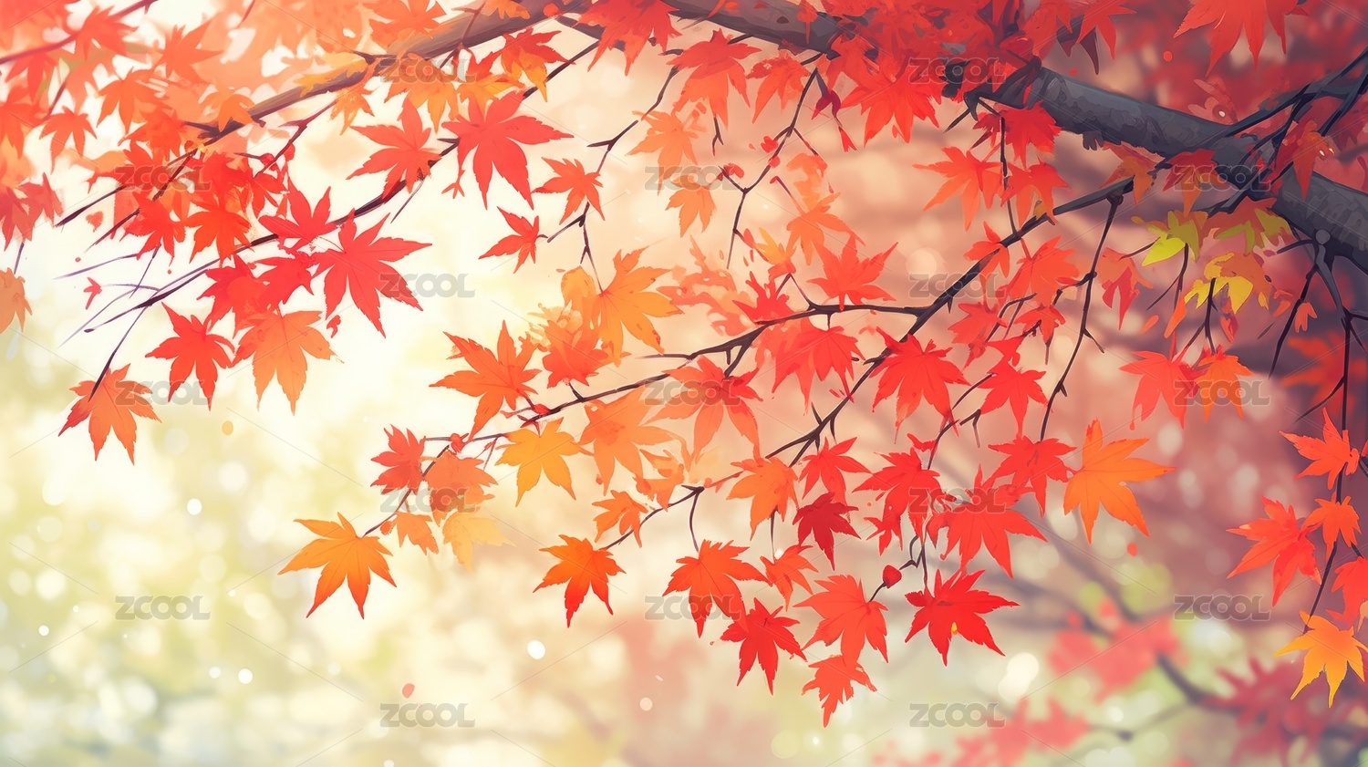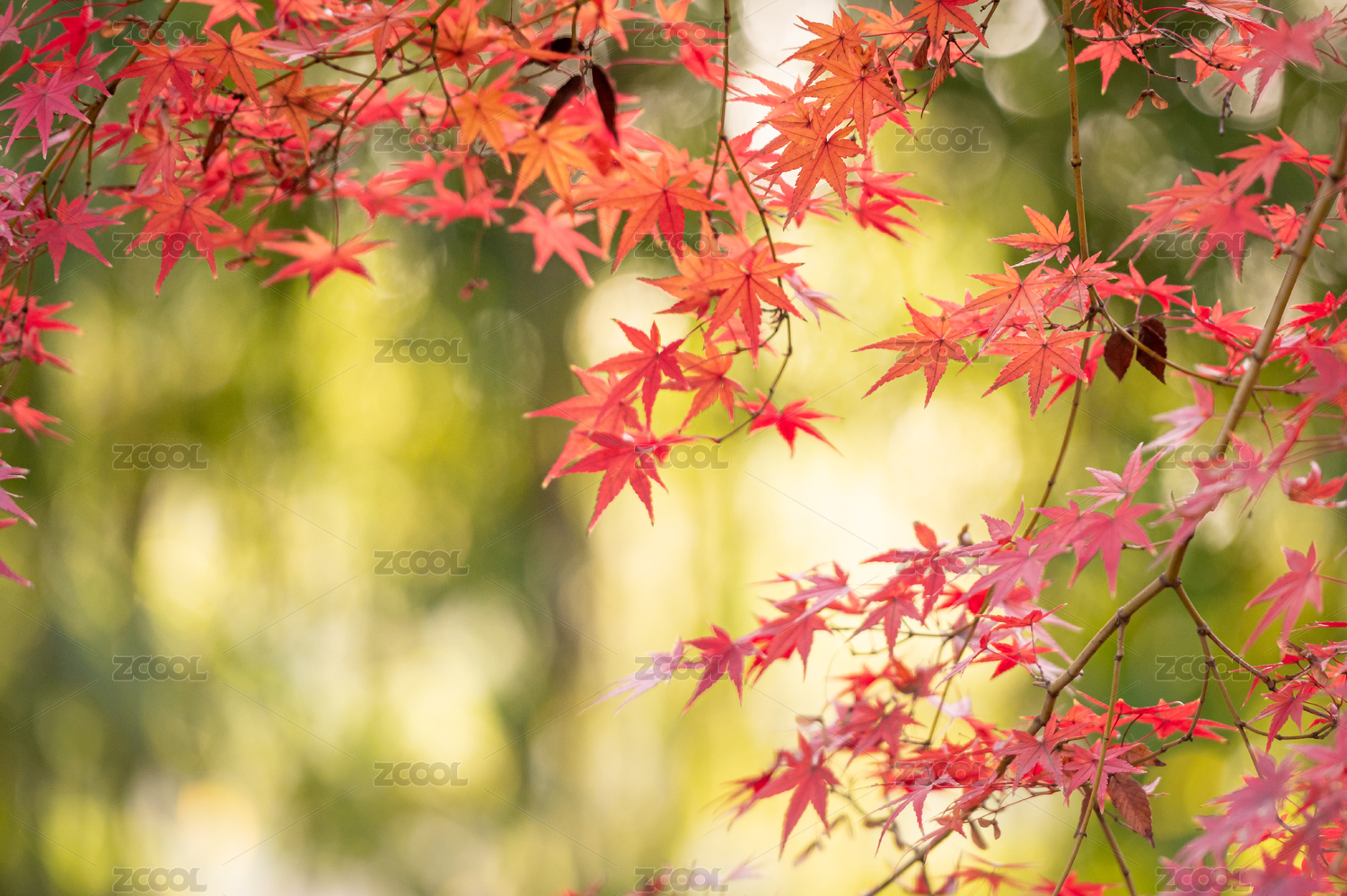 红色枫叶秋日树枝图