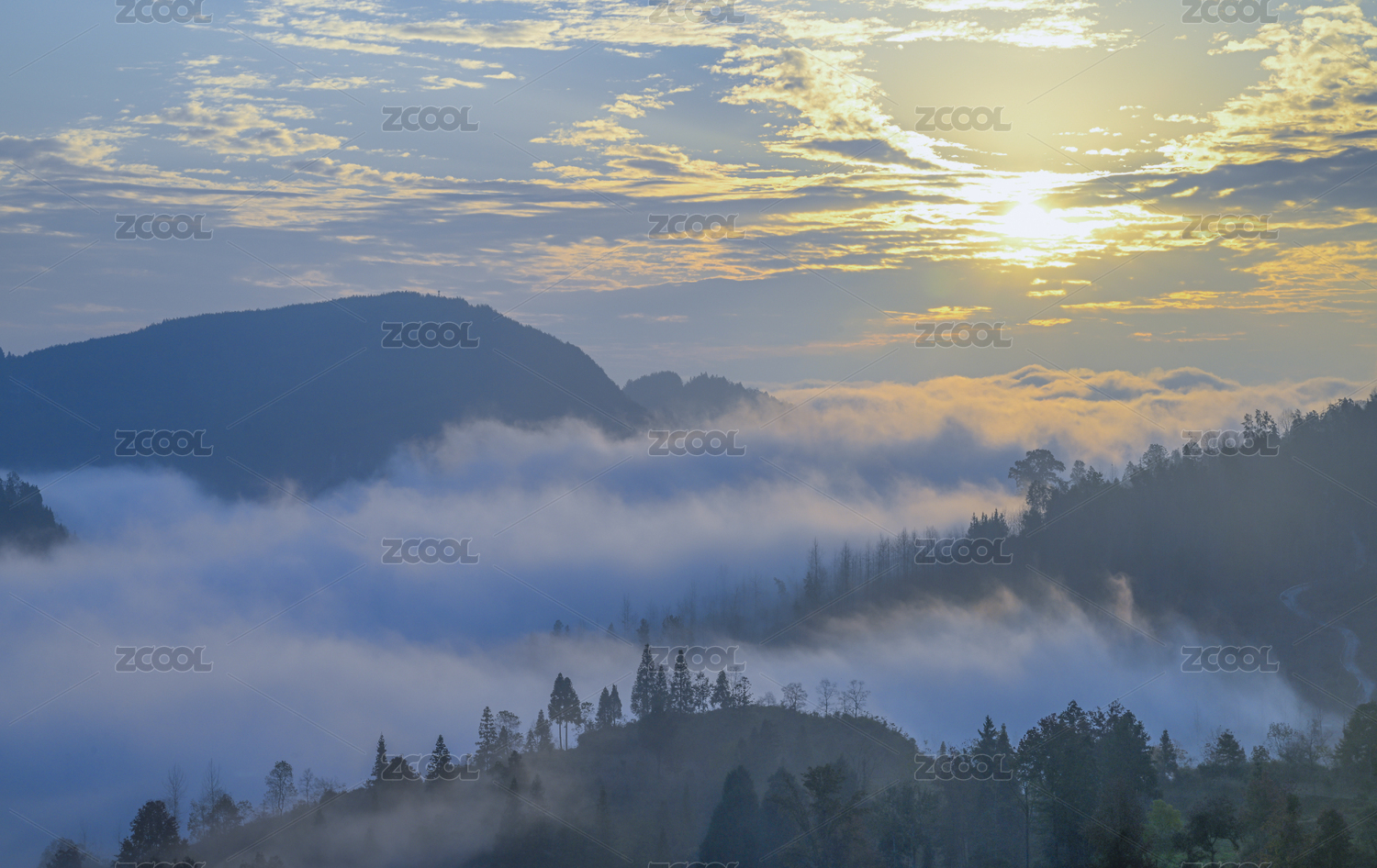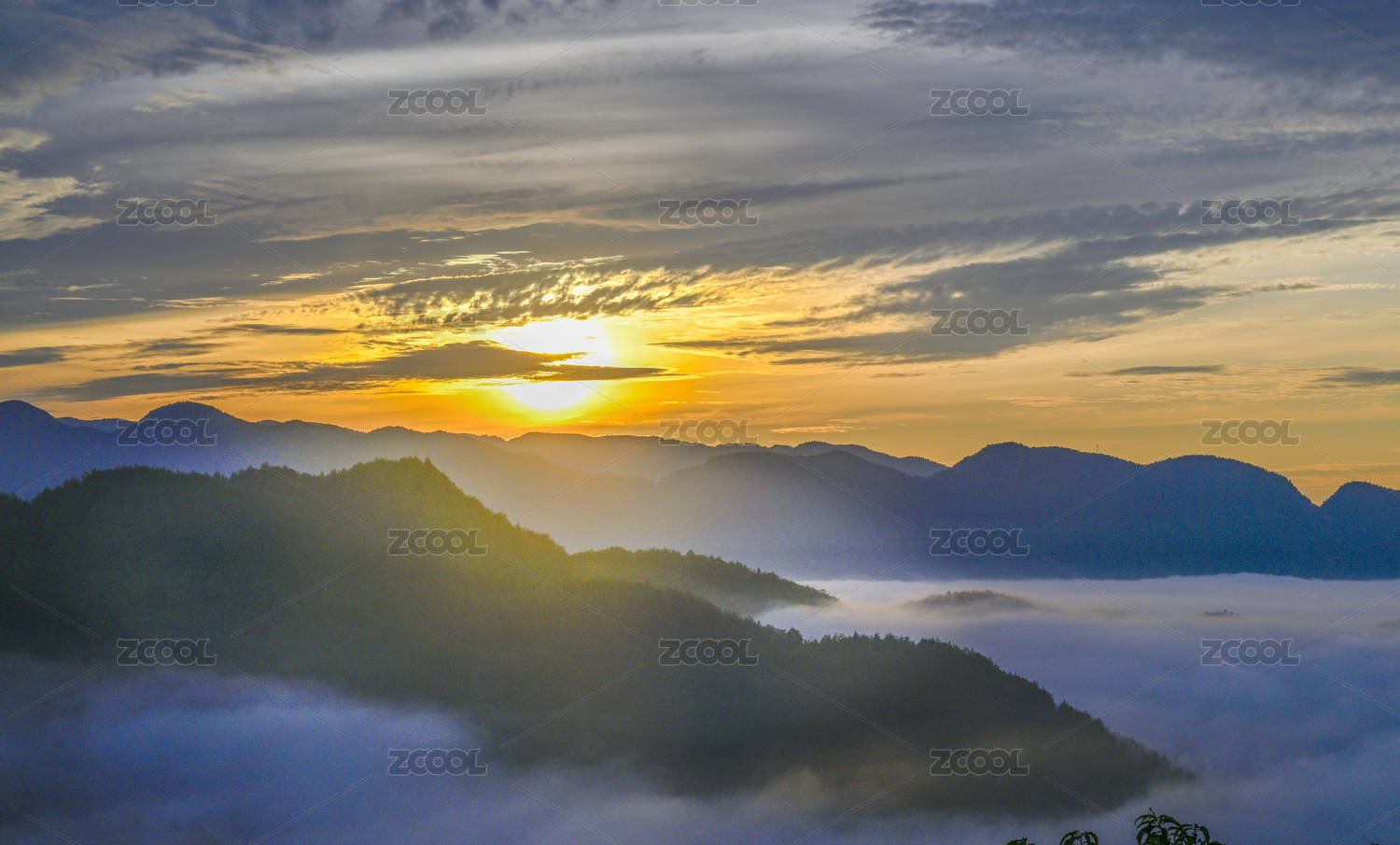 广西岑溪市天龙顶山地公园日出雾海奇观景色