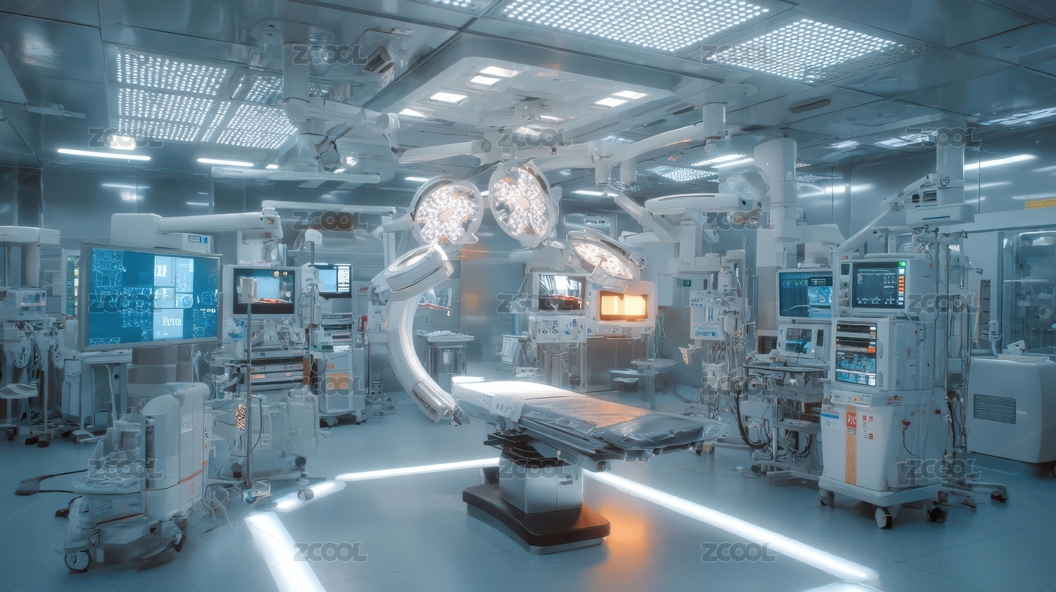 大型医院里干净整洁介入手术室内大C型臂血管造影仪
