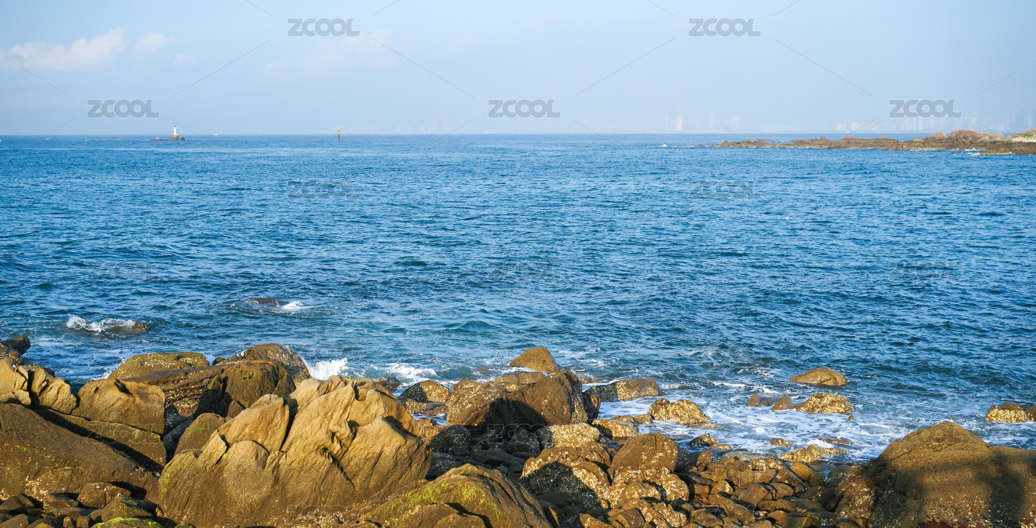 中国海南儋州龙门山景区大海与形状奇特的巨石