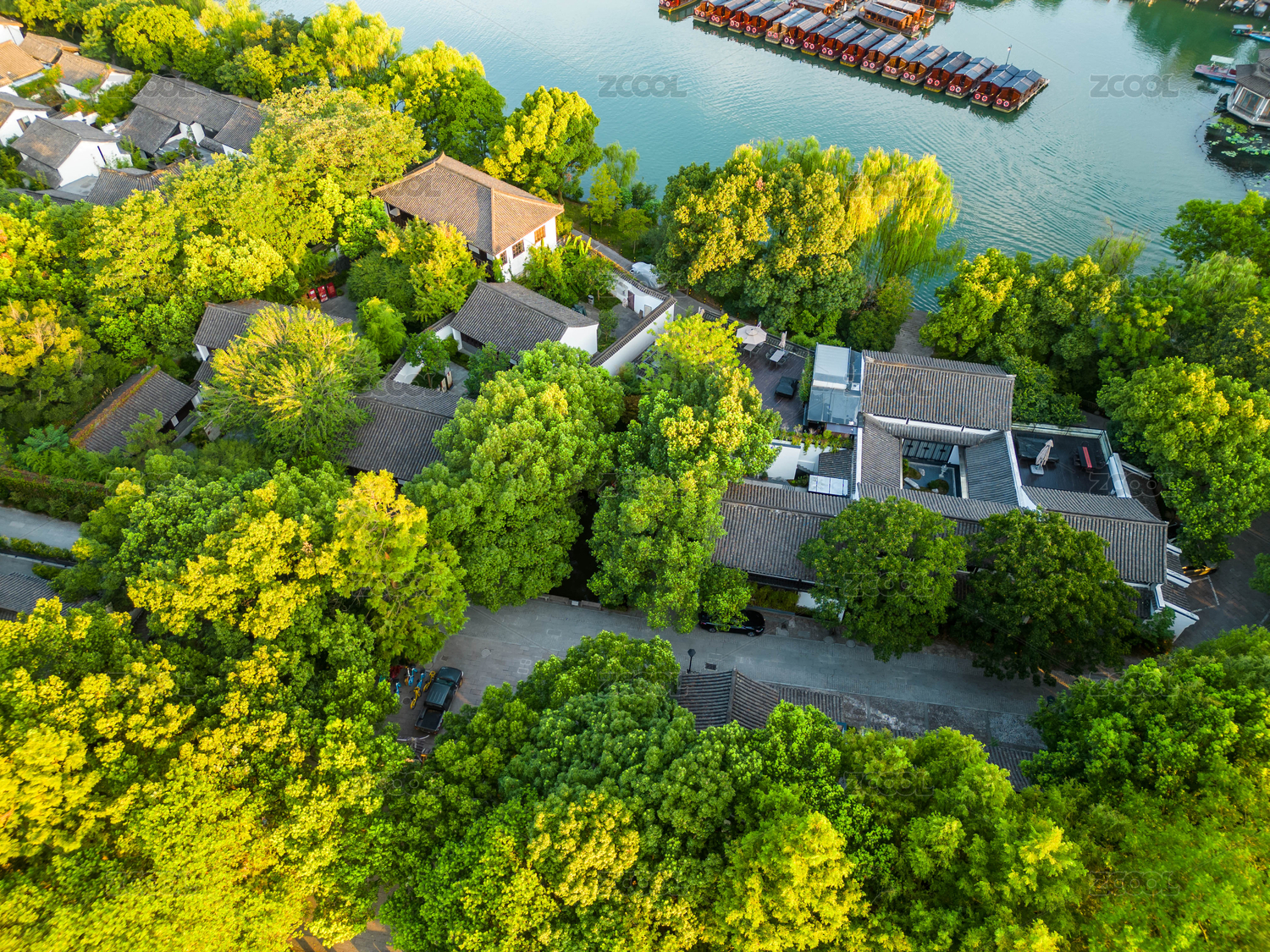 中国浙江杭州西湖郭庄航拍