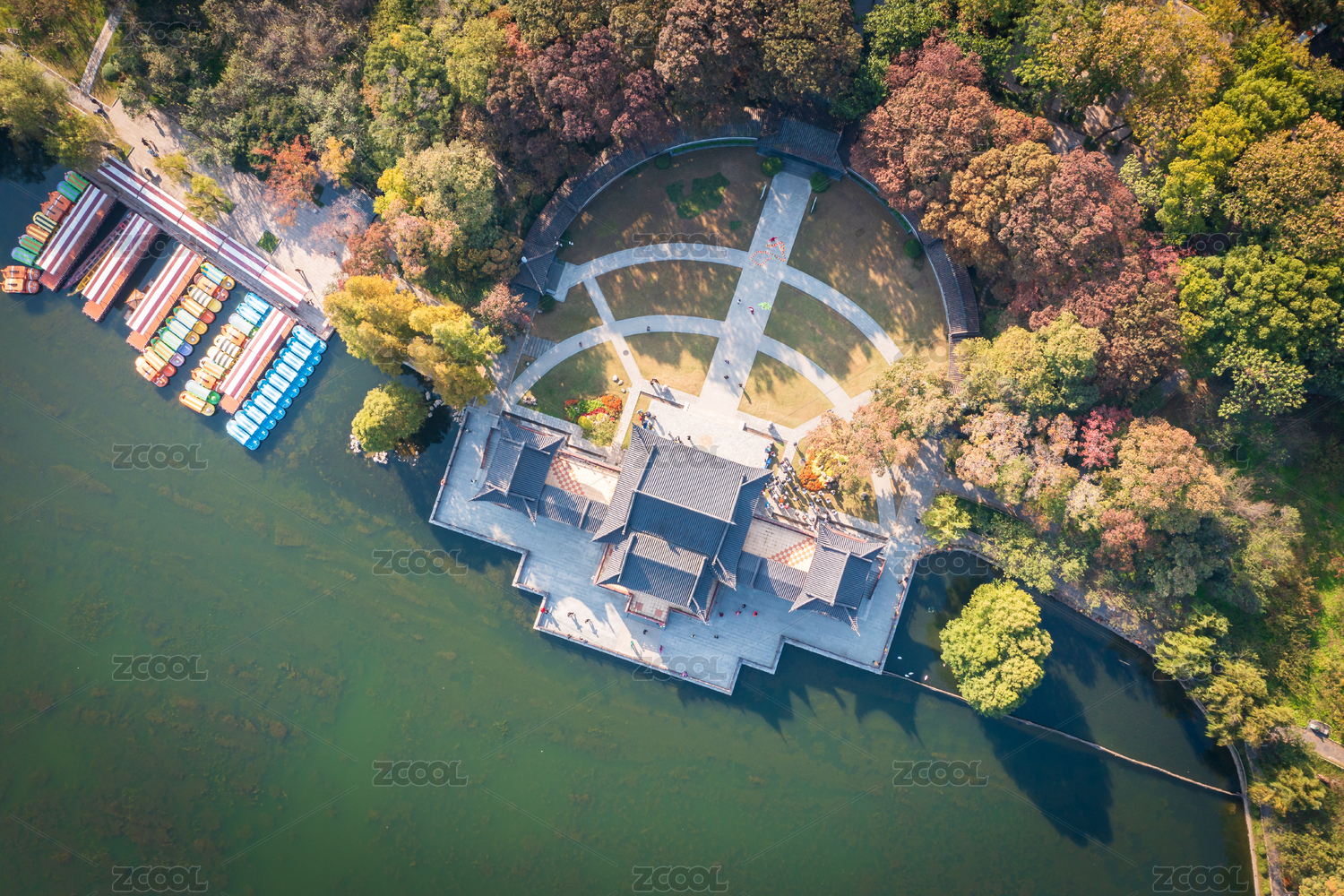 杭州西湖曲院风荷 秋景俯瞰