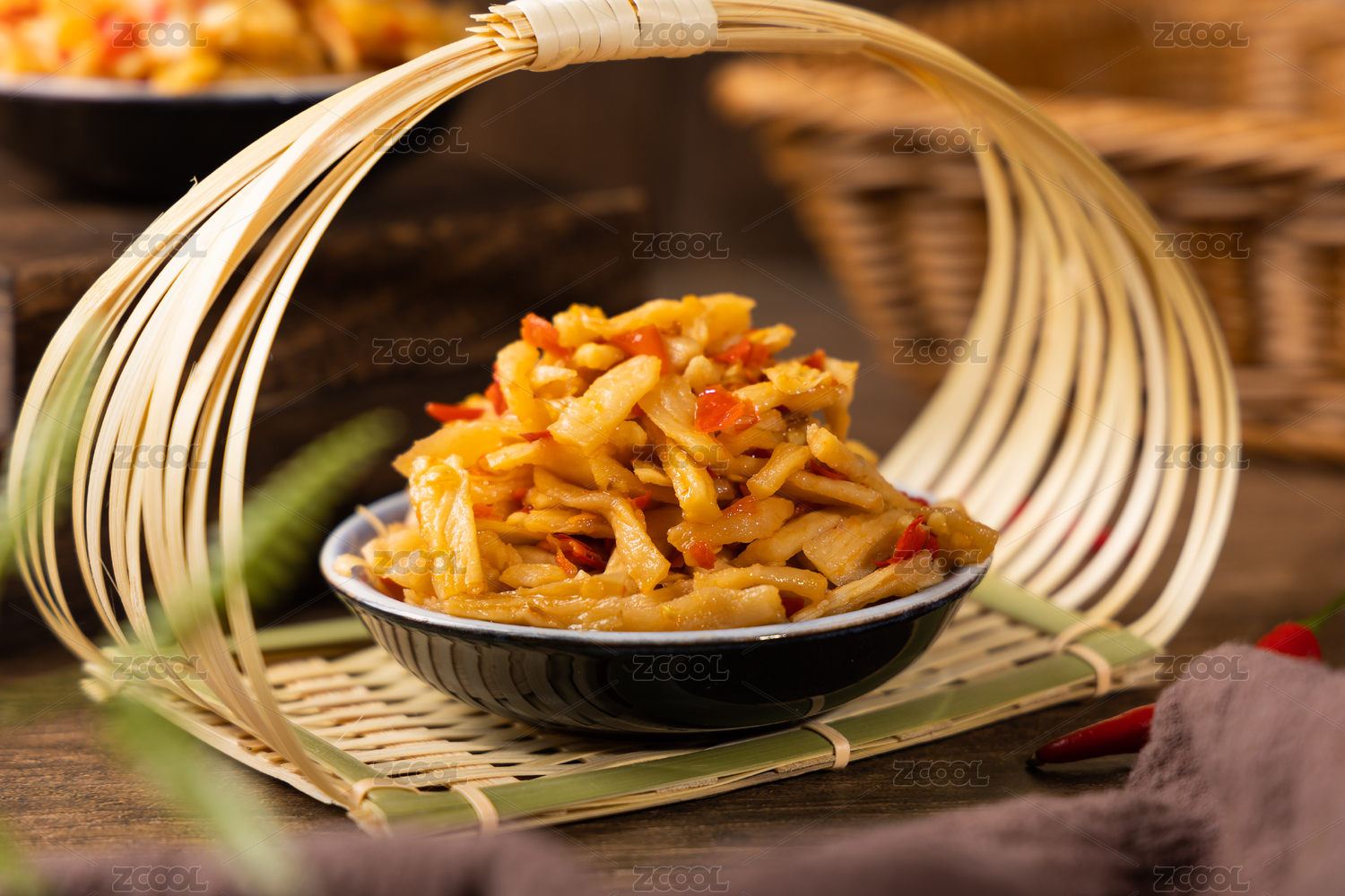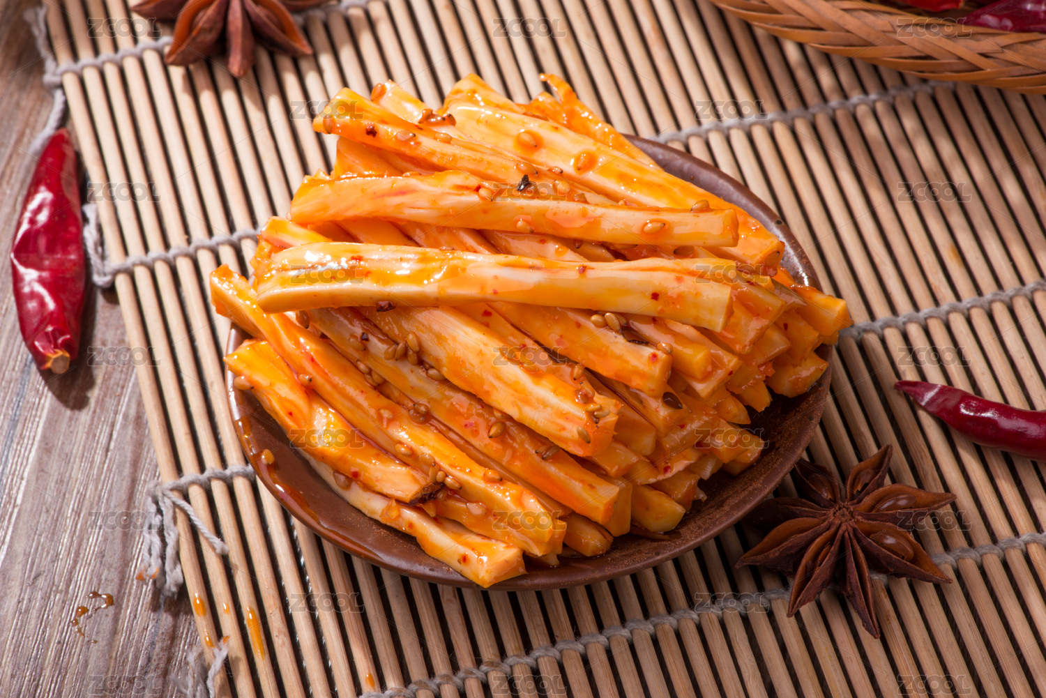 麻辣榨菜丝特写佐餐咸菜黑色背景