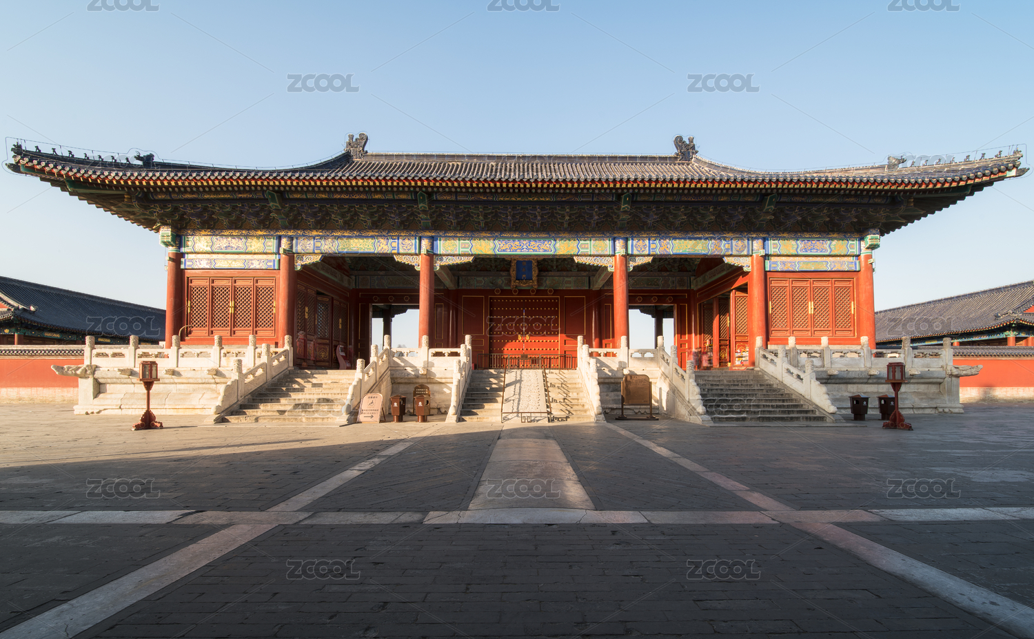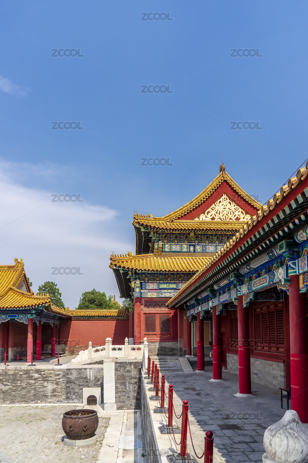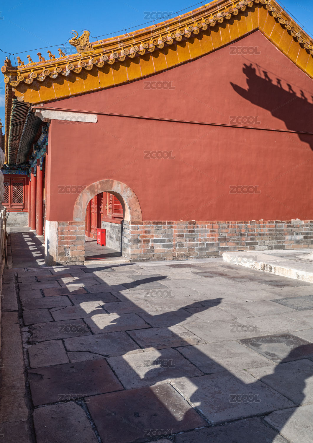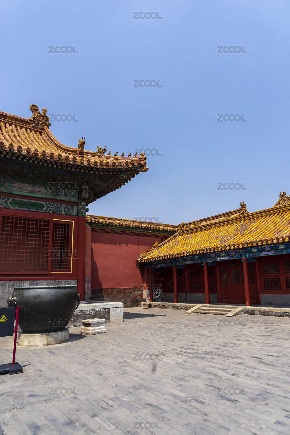 蓝天白云背景下中国北京故宫宫殿广场一角