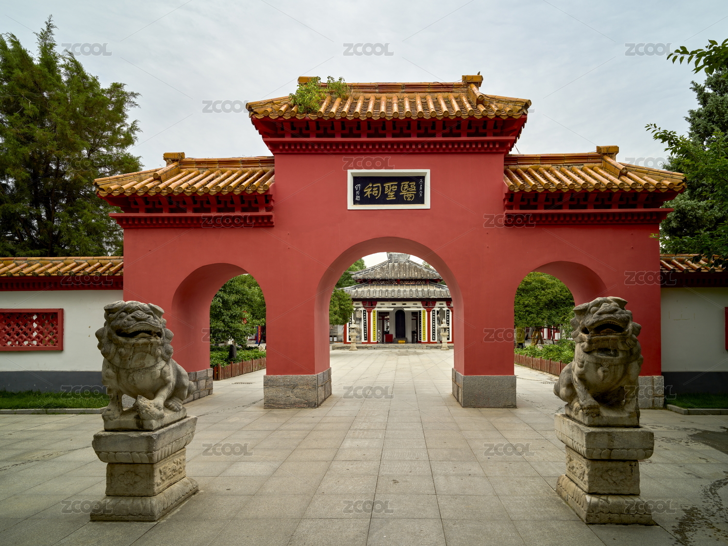 中国山东省寿光市林海生态博览园宁国寺殿宇中间的中式门楼
