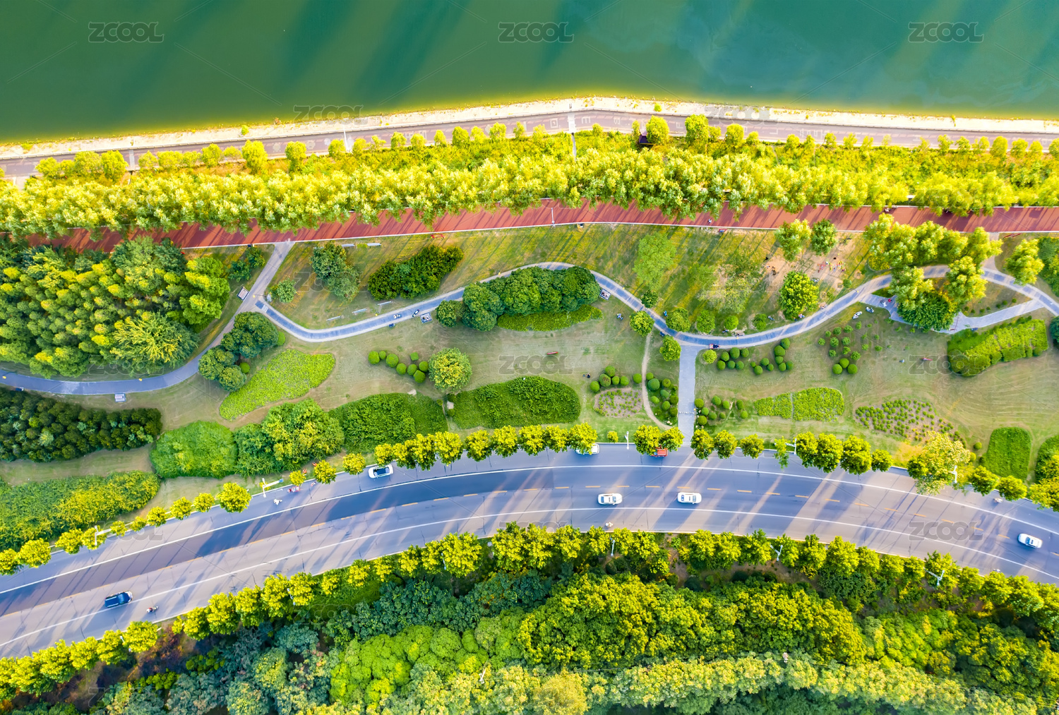 航拍中国河南禹州颍河生态长廊夏季绿化带