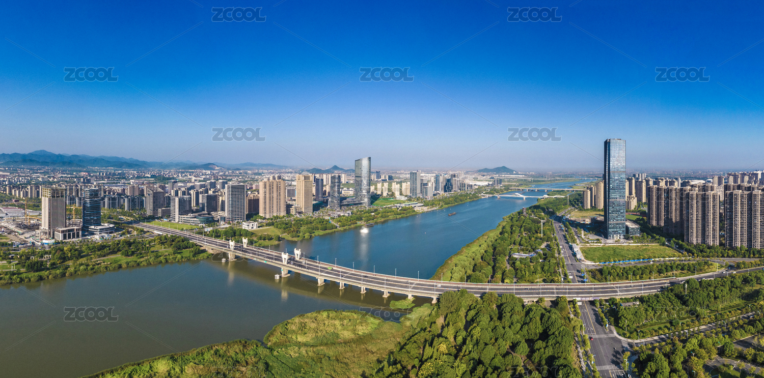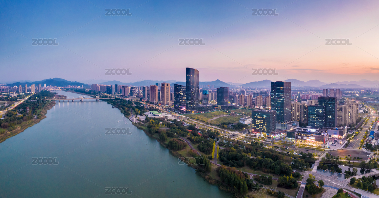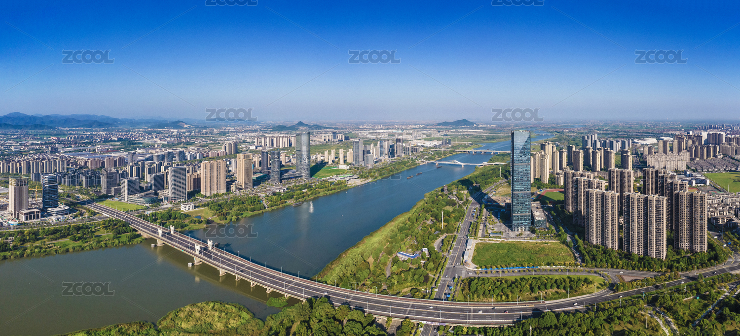 上虞,绍兴,一江两岸,城市风光,全景,江河,建筑,城市天际线,天空,航拍