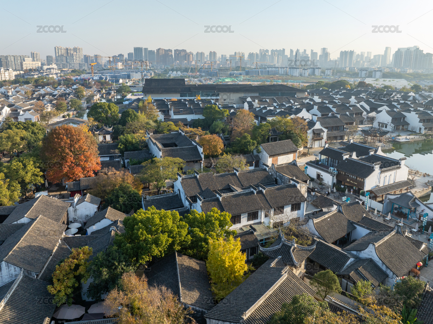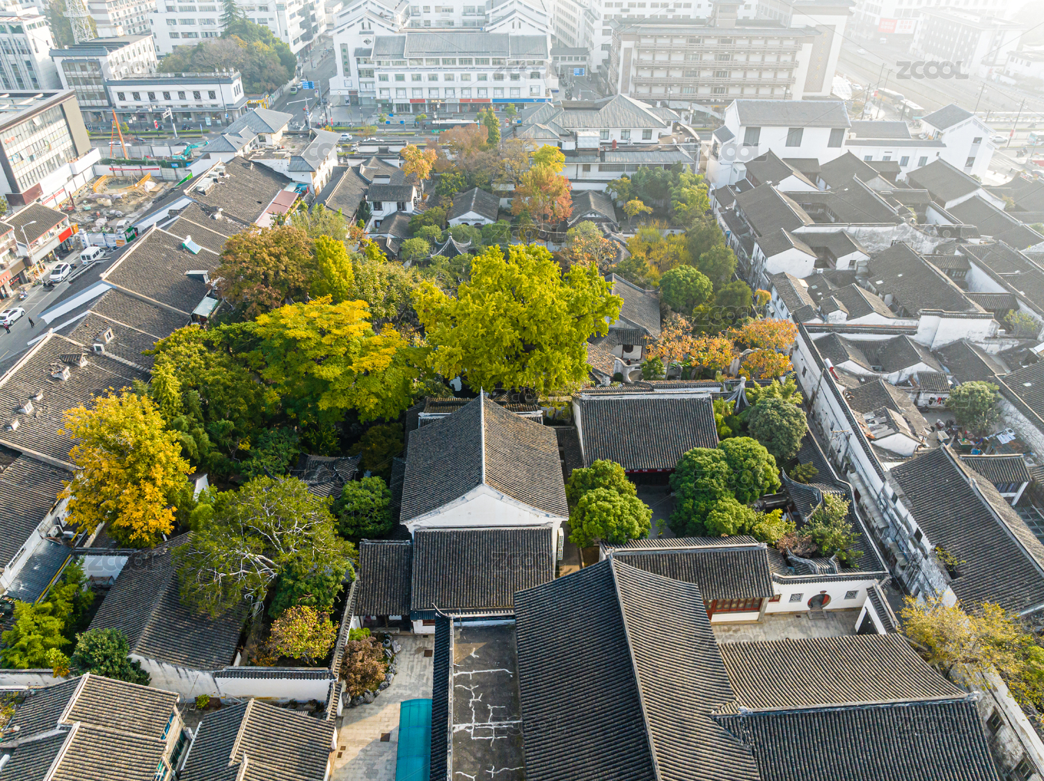 江苏省无锡市惠山古镇住宅房屋和银杏树风光