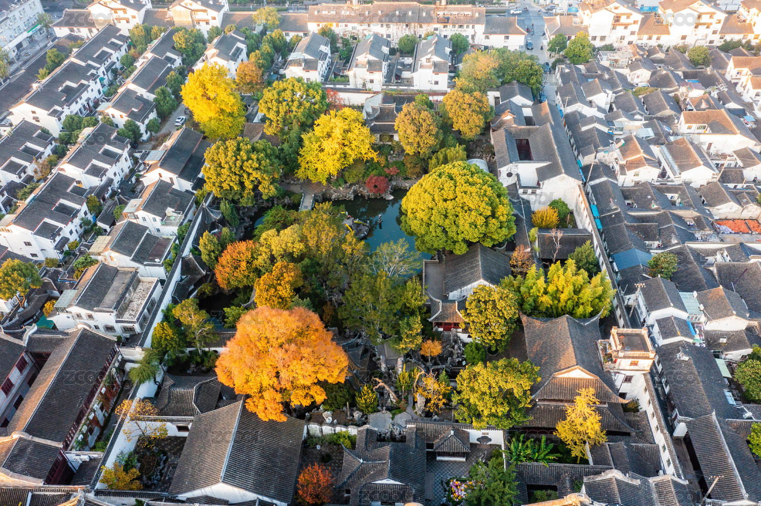中国江苏苏州狮子林秋季航拍