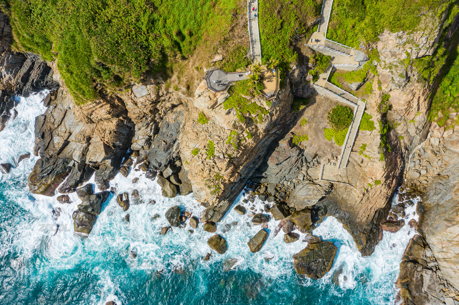 航拍海南陵水分界洲岛热带海岛崖壁民宿房间