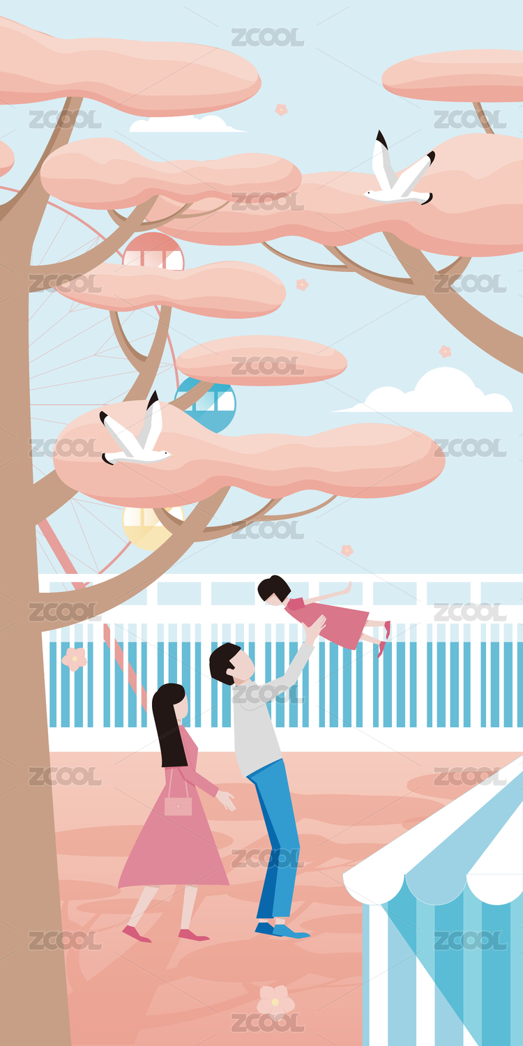 六一儿童节家人公园游玩户外游乐园玩耍插画