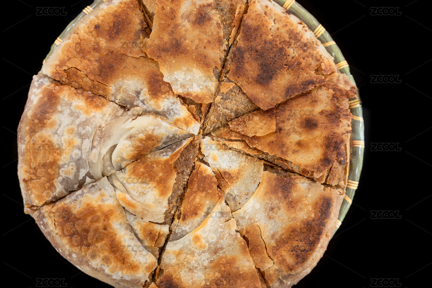 木桌子上的中国新疆维吾尔族传统美食烤馕