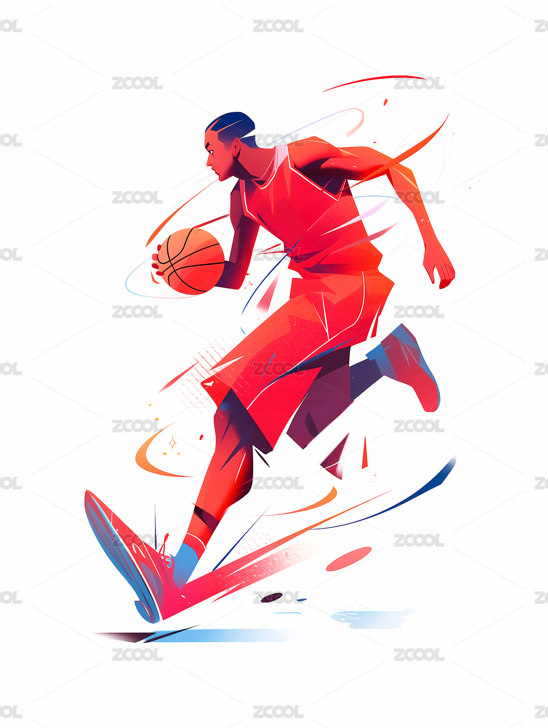 扁平风穿运动服打篮球运动的男生