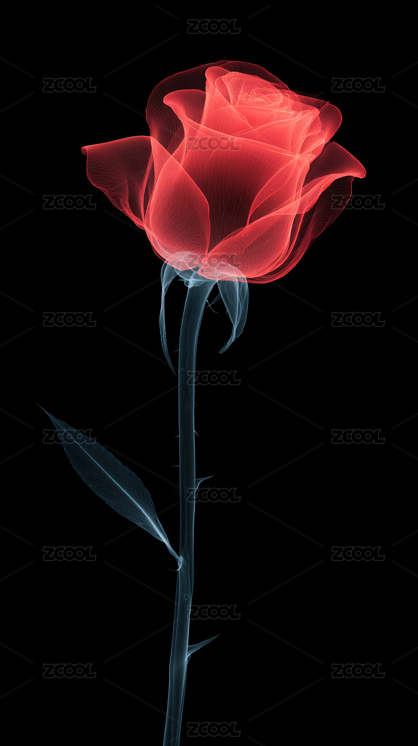 梦幻霓虹玫瑰花插画