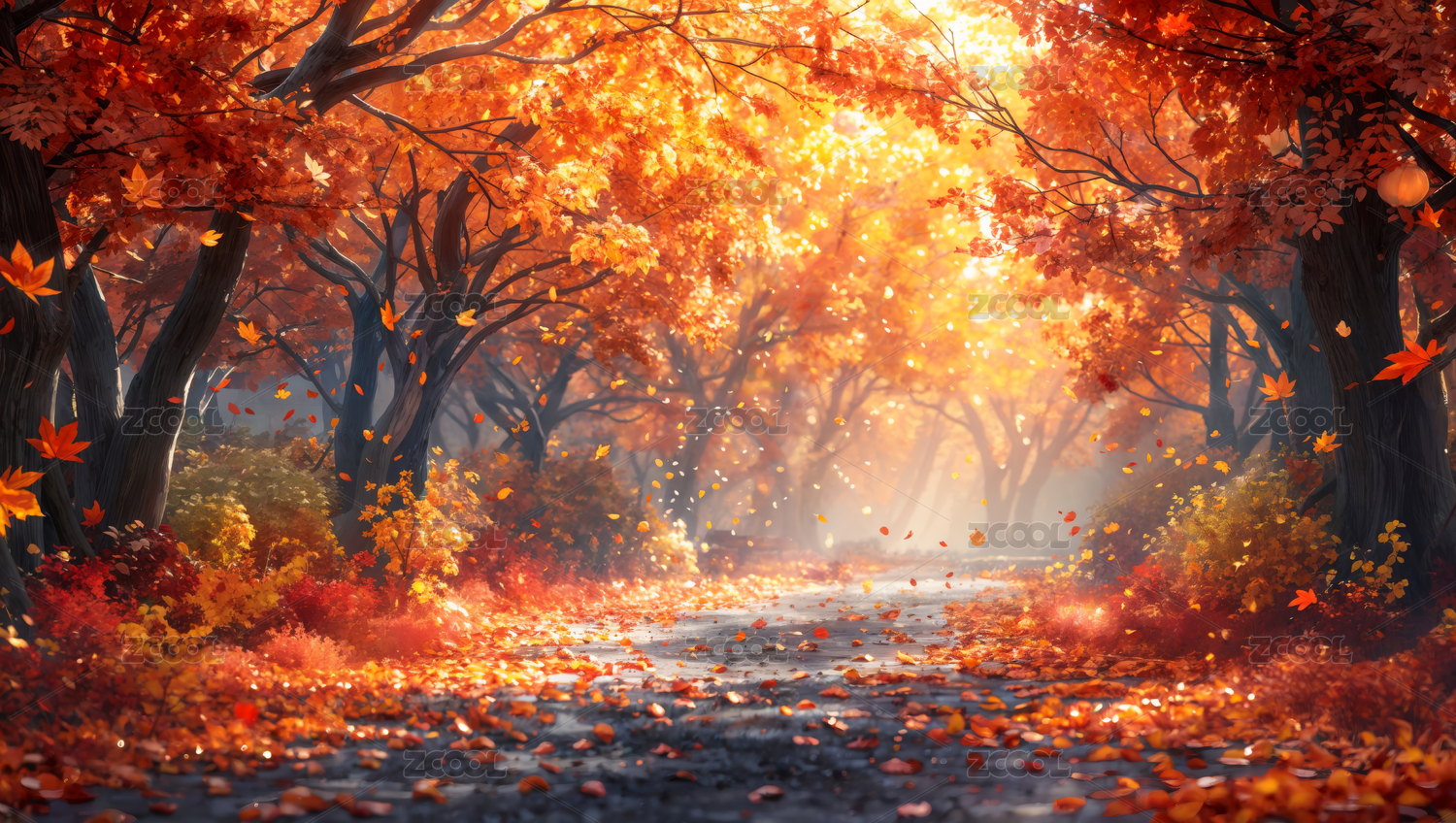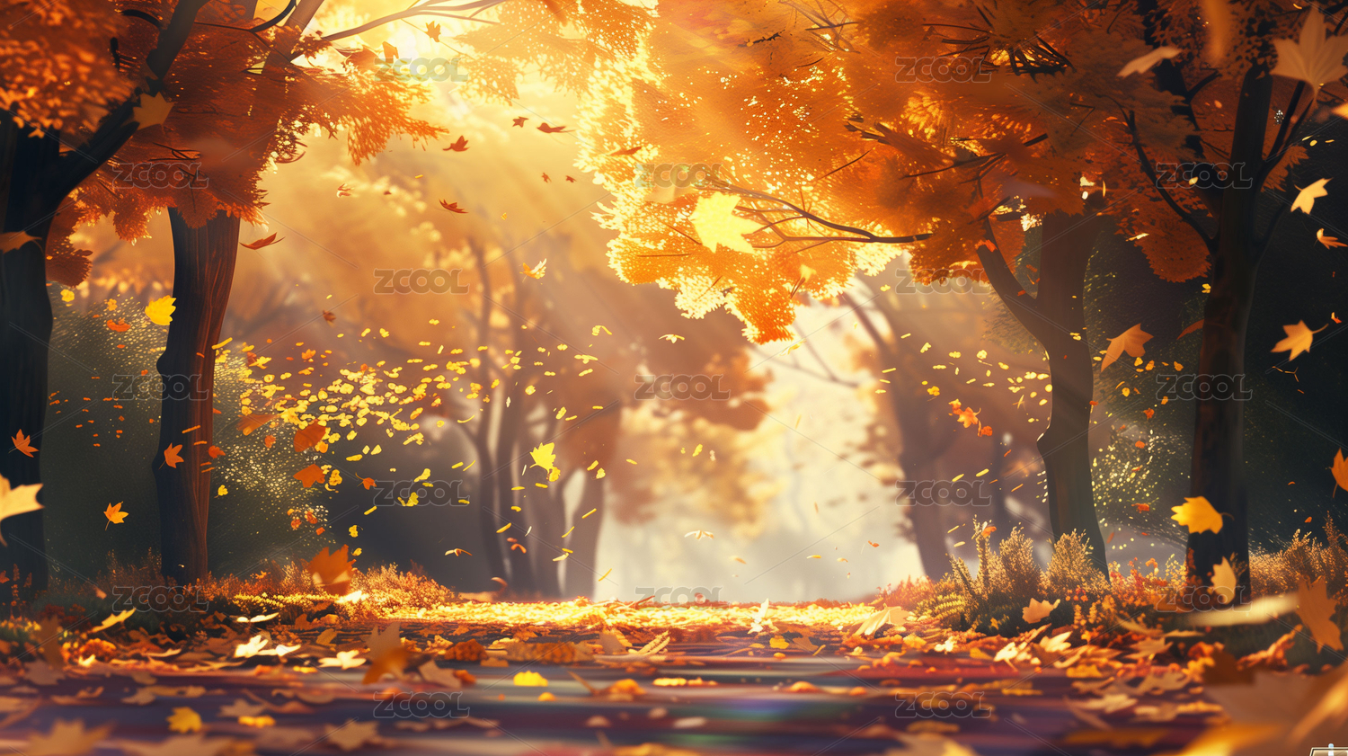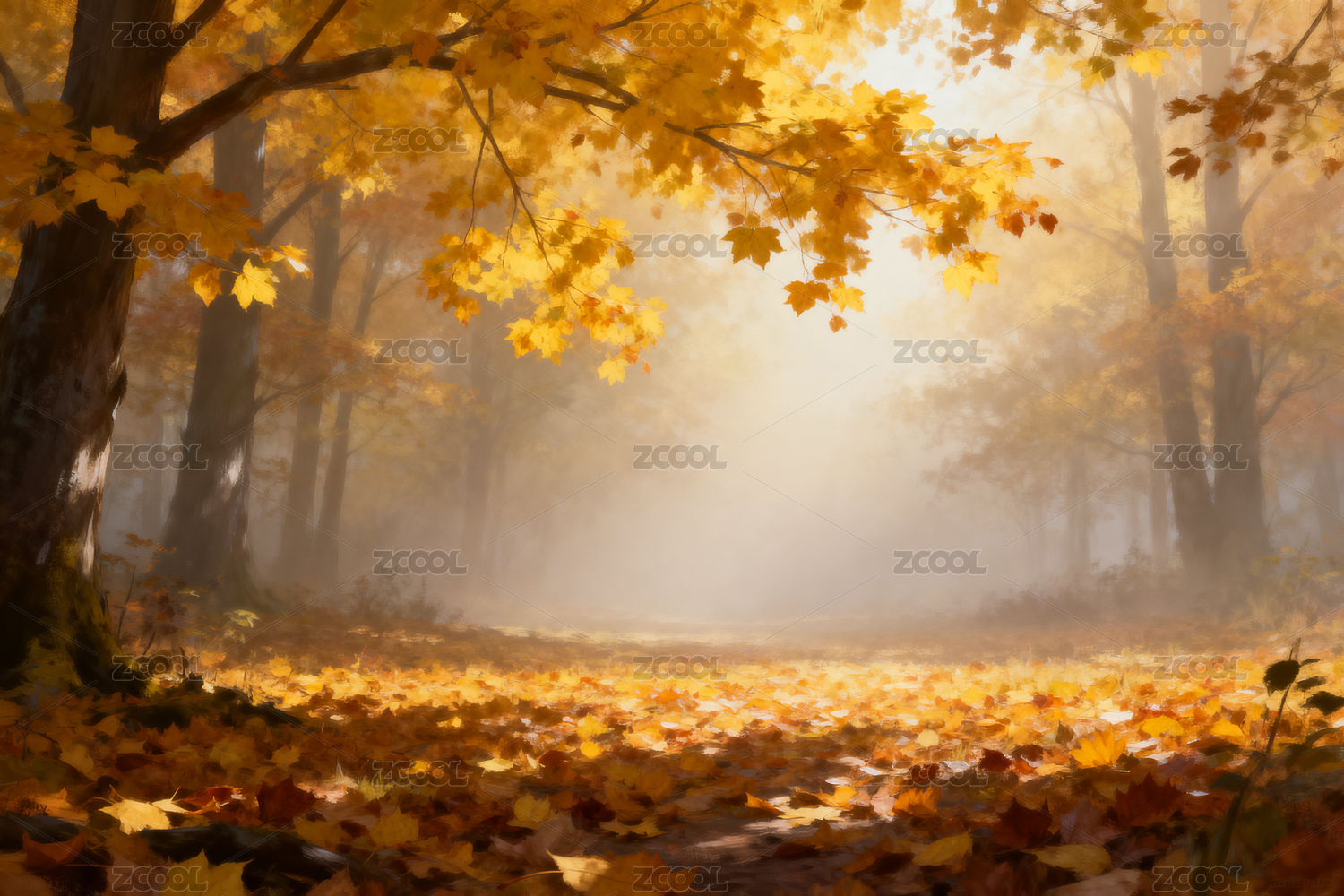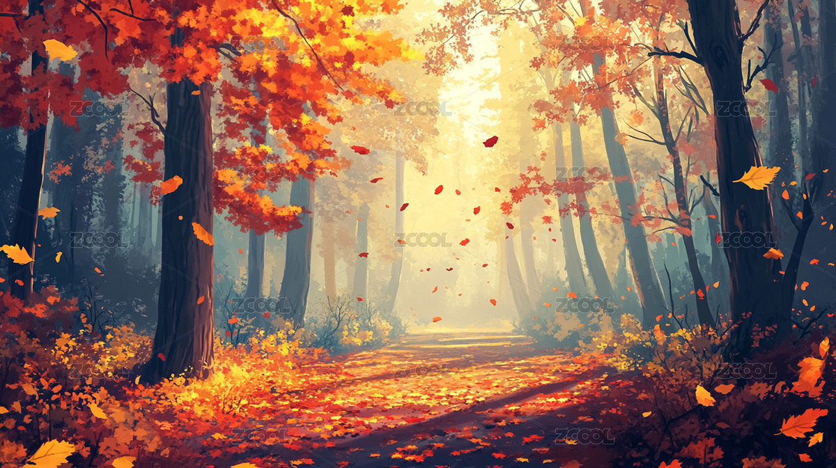 秋天,插画,秋叶,树林,森林,阳光,清晨,早晨,落叶