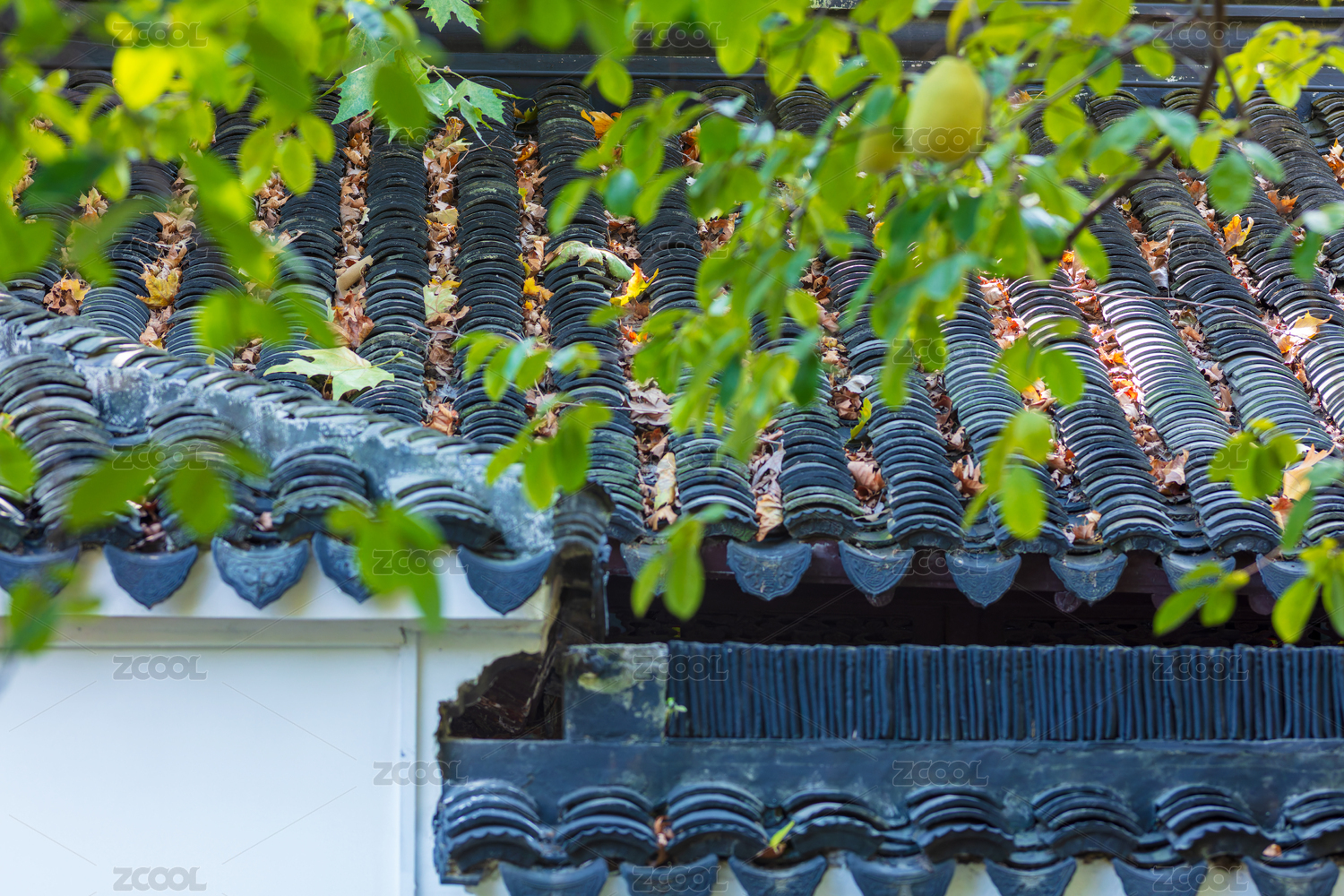 中国磁器口古镇里老宅子屋檐上的瓦片
