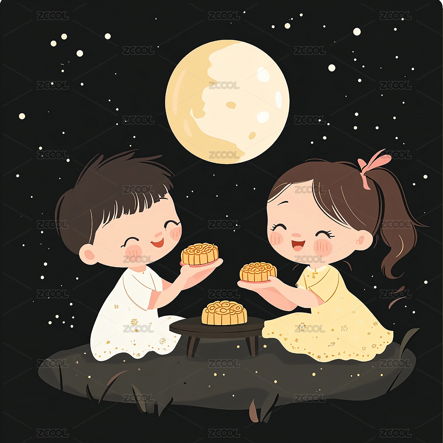 孔明灯,儿童,卡通,绘本,梦幻,中秋,许愿,星空,夜景