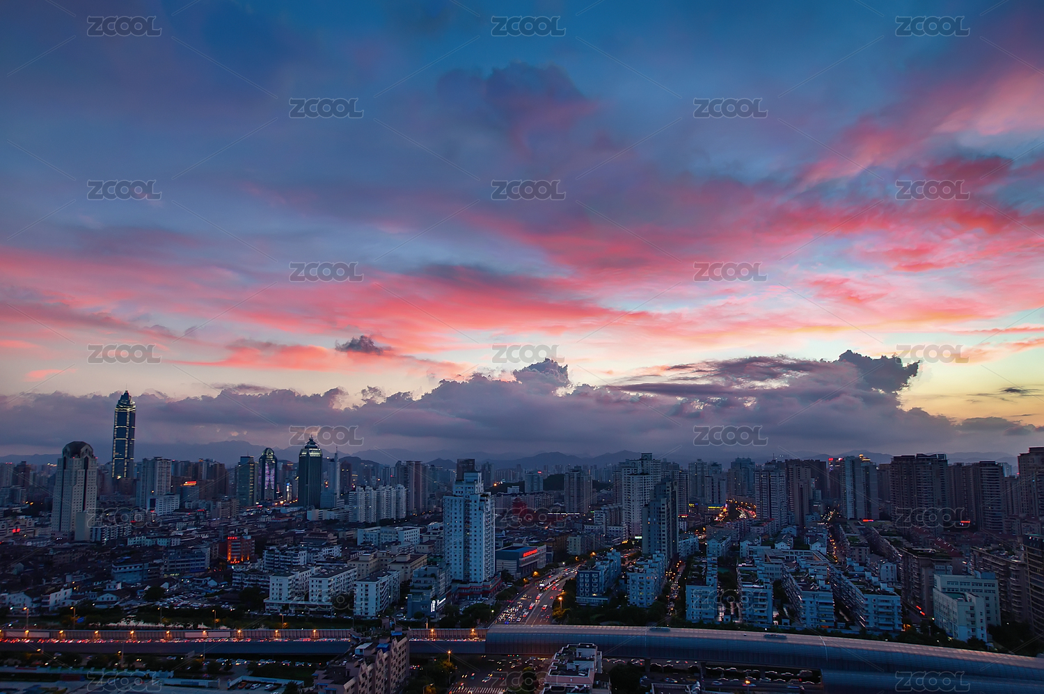 中国广东佛山顺德城市风光 夏季美丽的晚霞