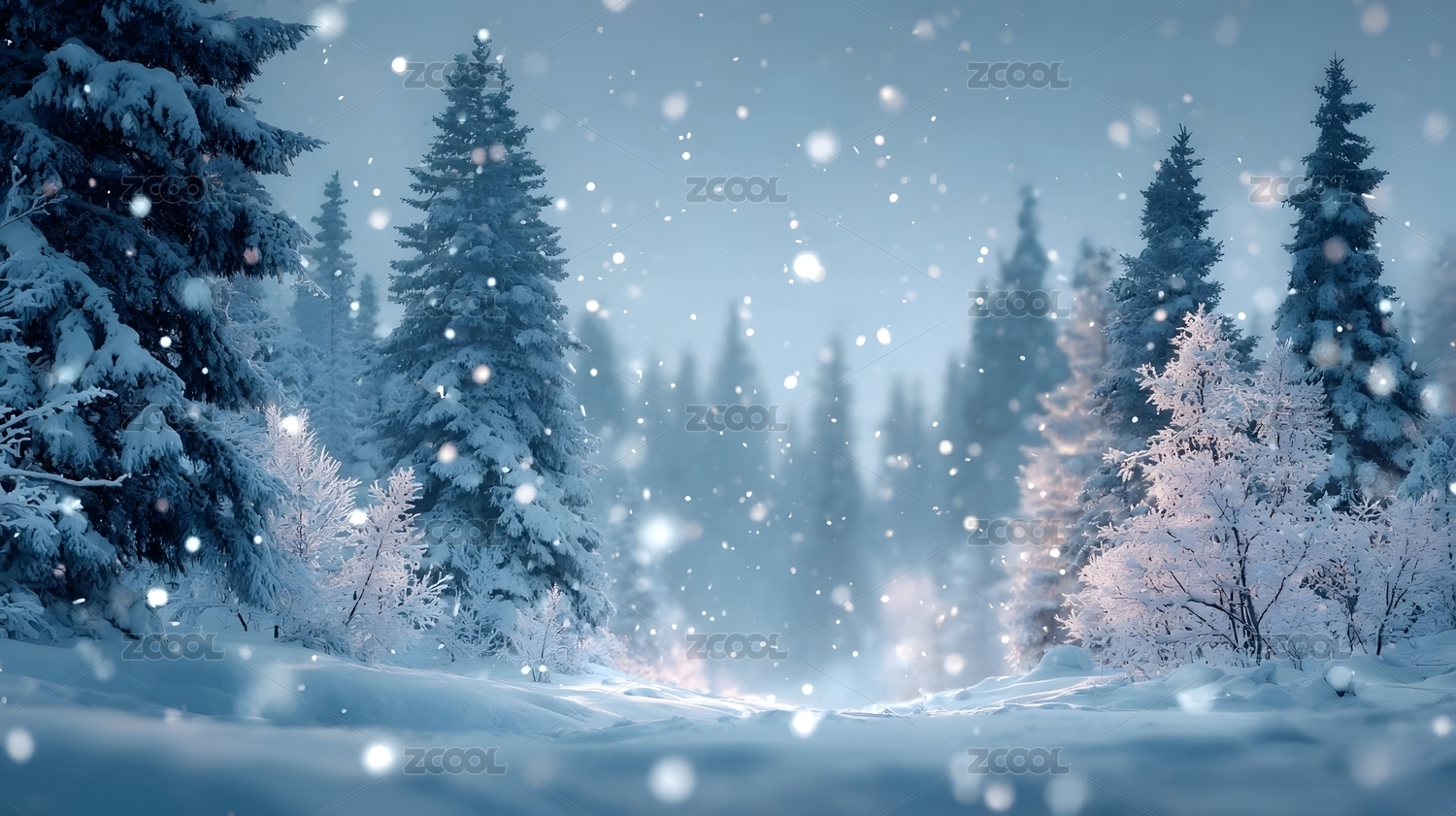 圣诞树,雪,森林,夜晚,灯光,装饰,假期,冬天,自然,户外