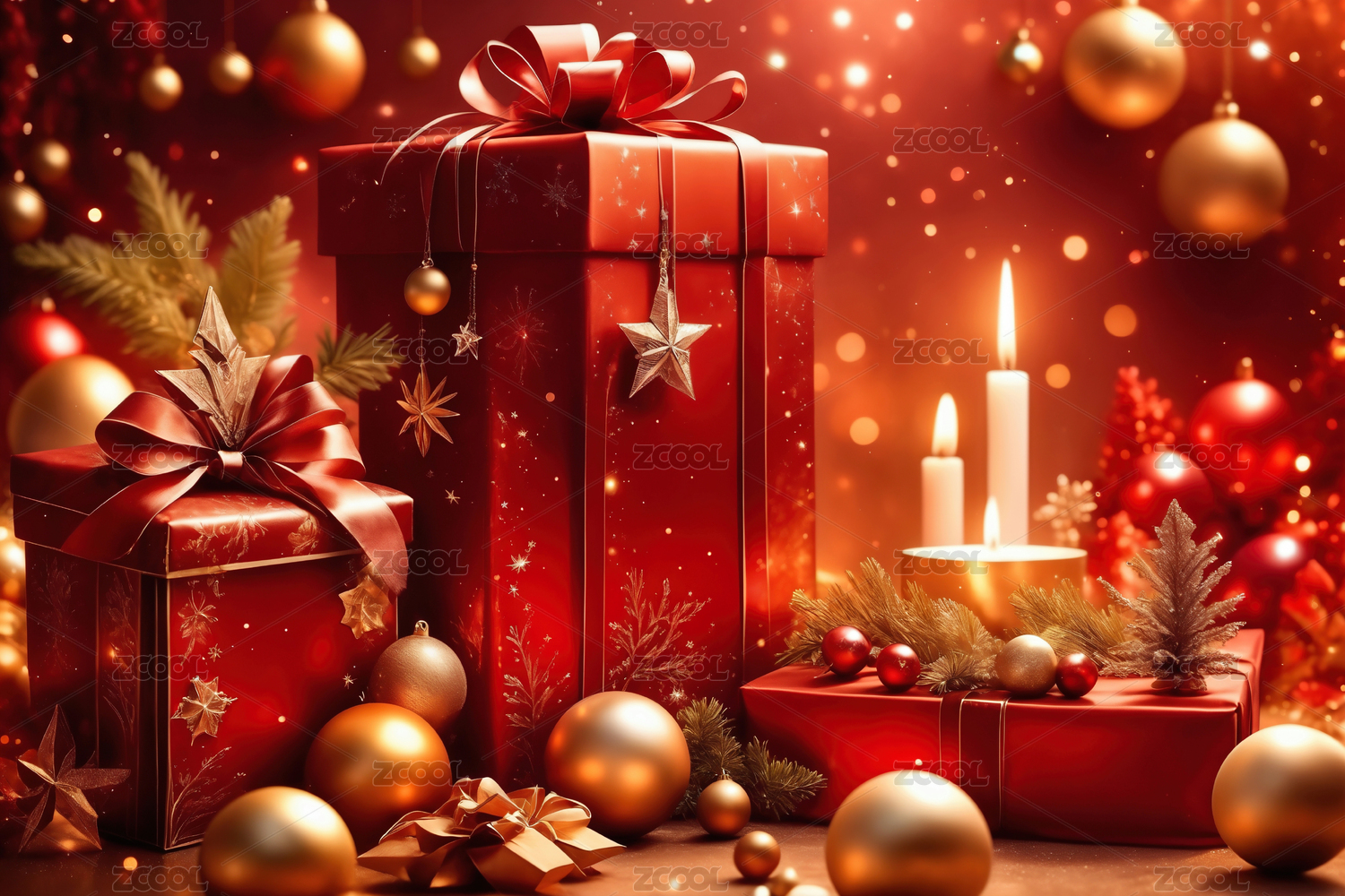金色丝带红礼盒