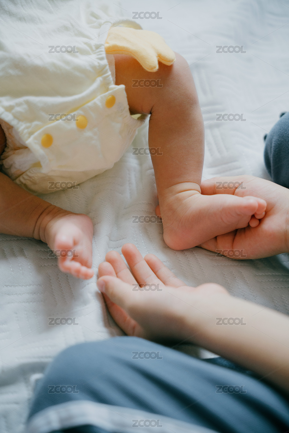 妈妈的大手托着婴儿的小手