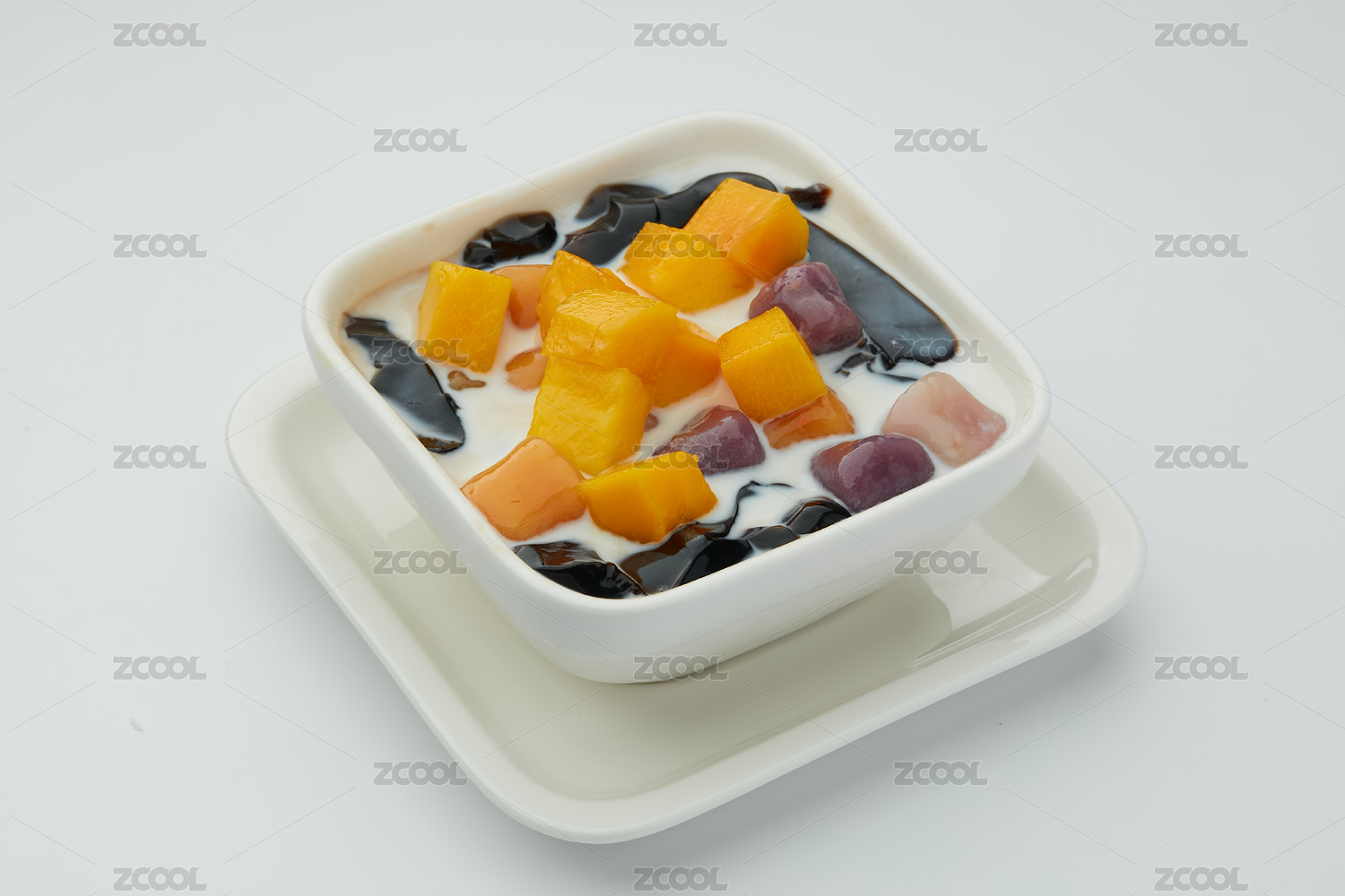 白色背景中美味的水果杂果西米露
