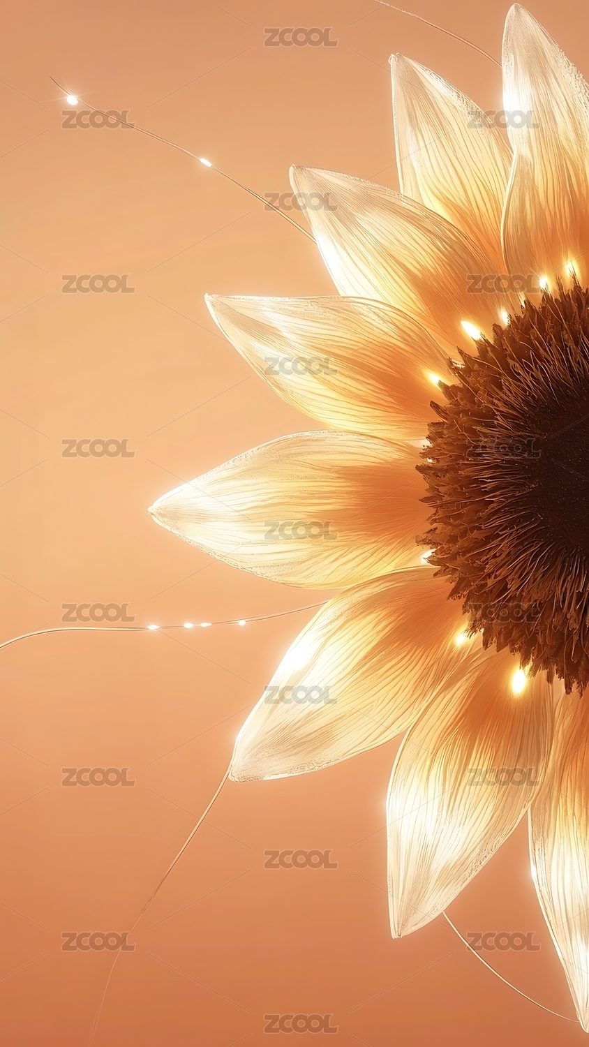 美丽的向日葵花瓣在黄色背景上/向日葵花瓣特写