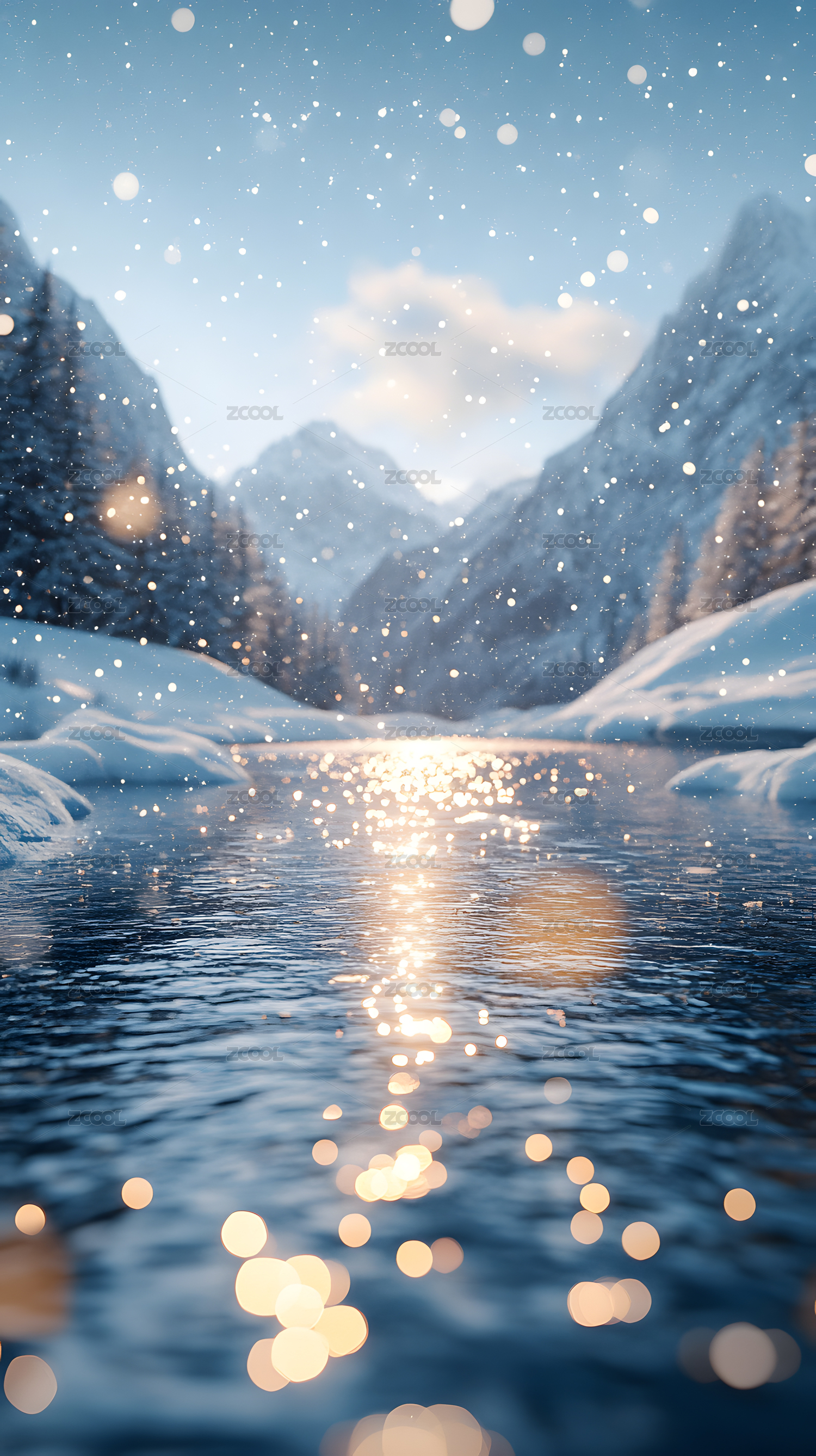 冬季雪山河流美景