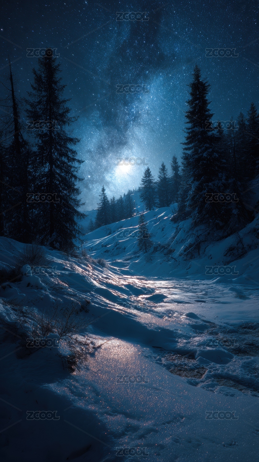 冬夜雪林银河璀璨