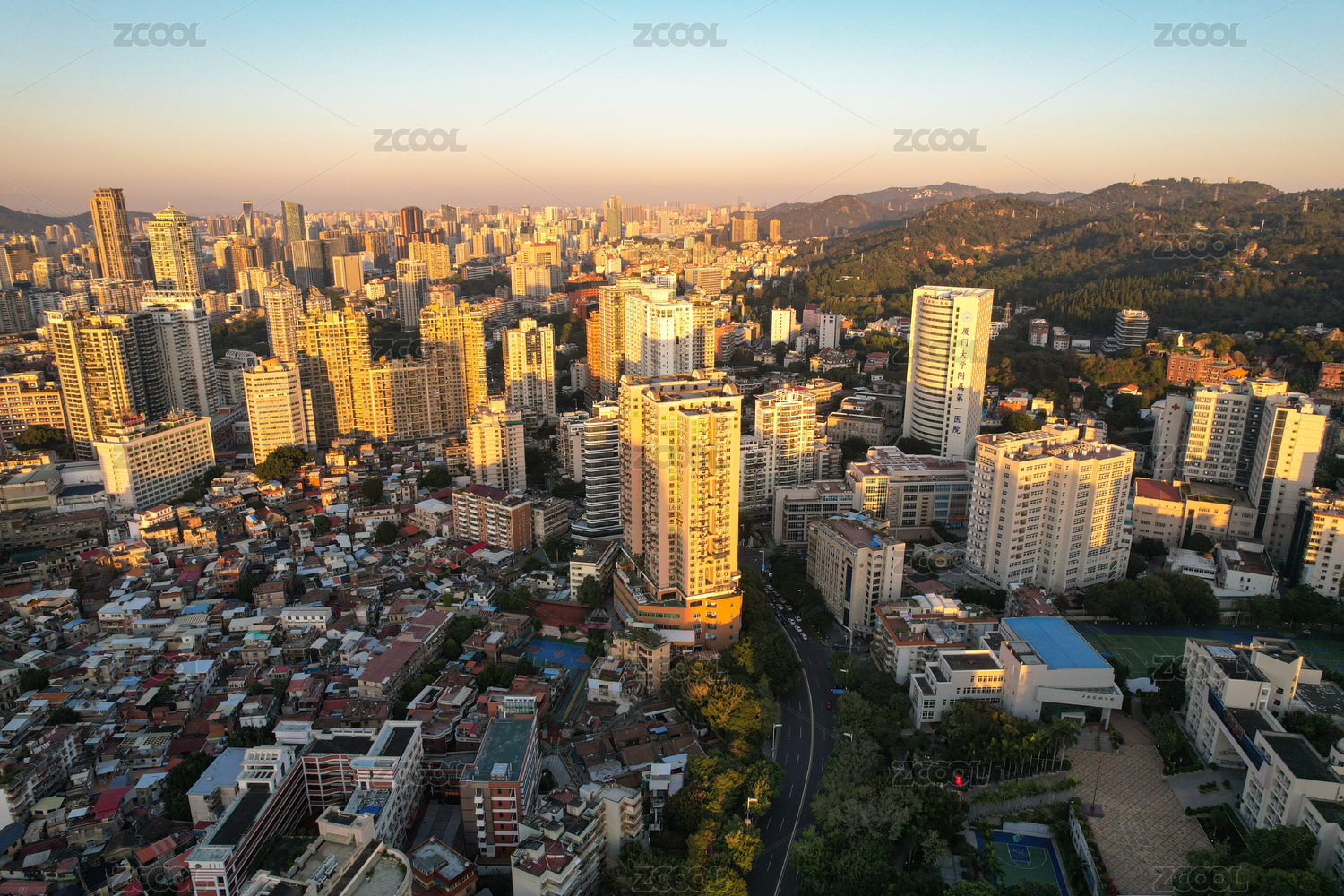 福建,厦门,思明区,航拍,全景图,日出,城市,建筑,房屋,鸟瞰