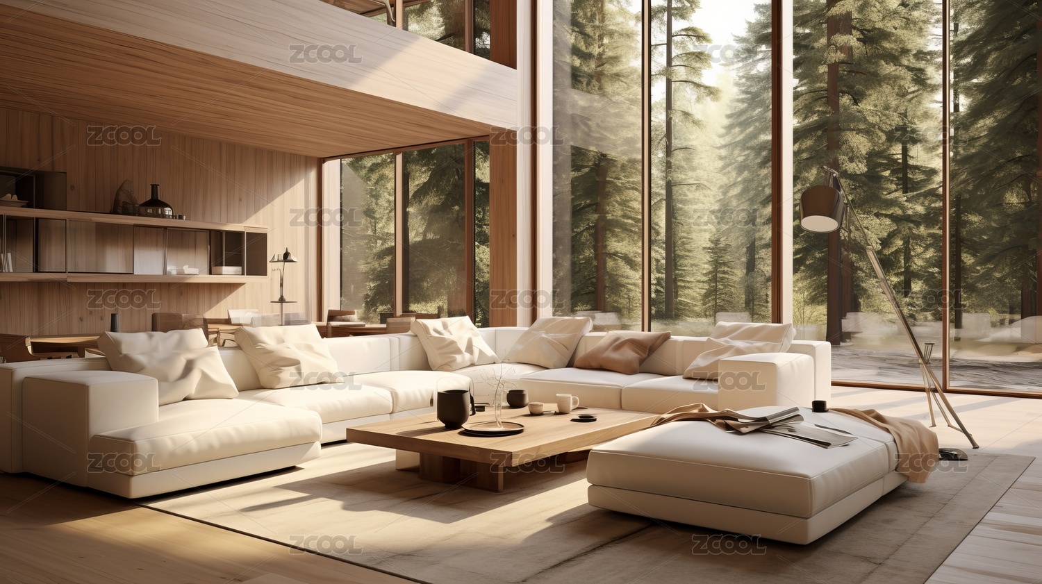现代简约风格客厅设计大窗户和木质室内