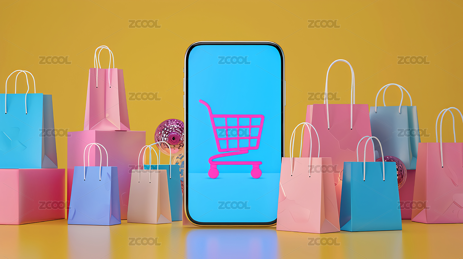 手机,购物,电商,网购,线上,线下,购物袋,购物车,生活方式,时尚