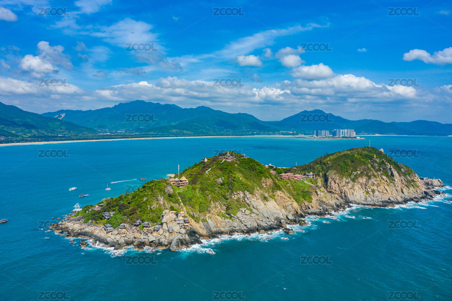 航拍海南陵水分界洲岛热带海滨蓝色大海岛屿