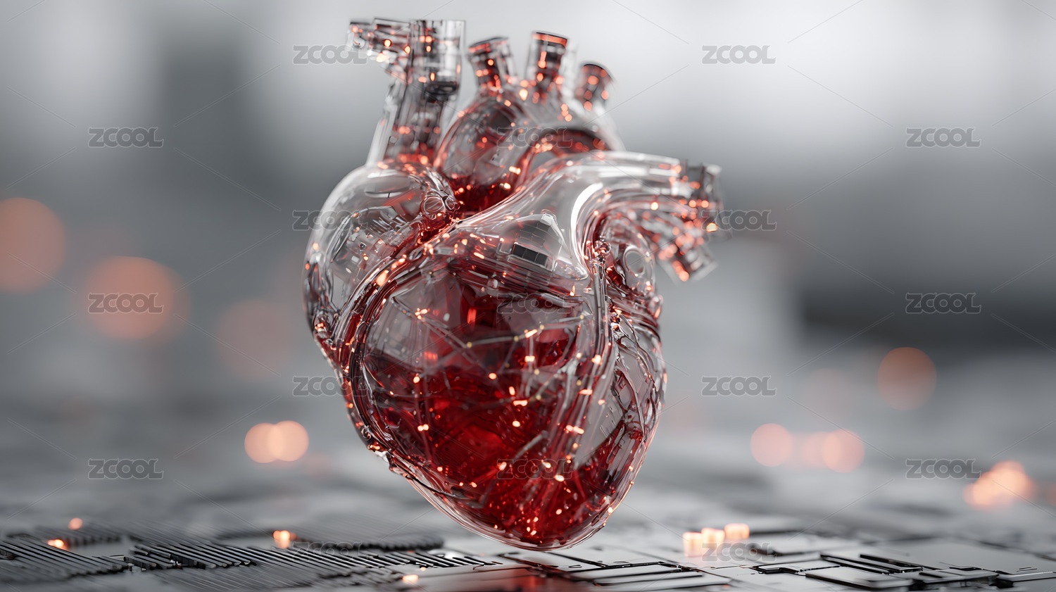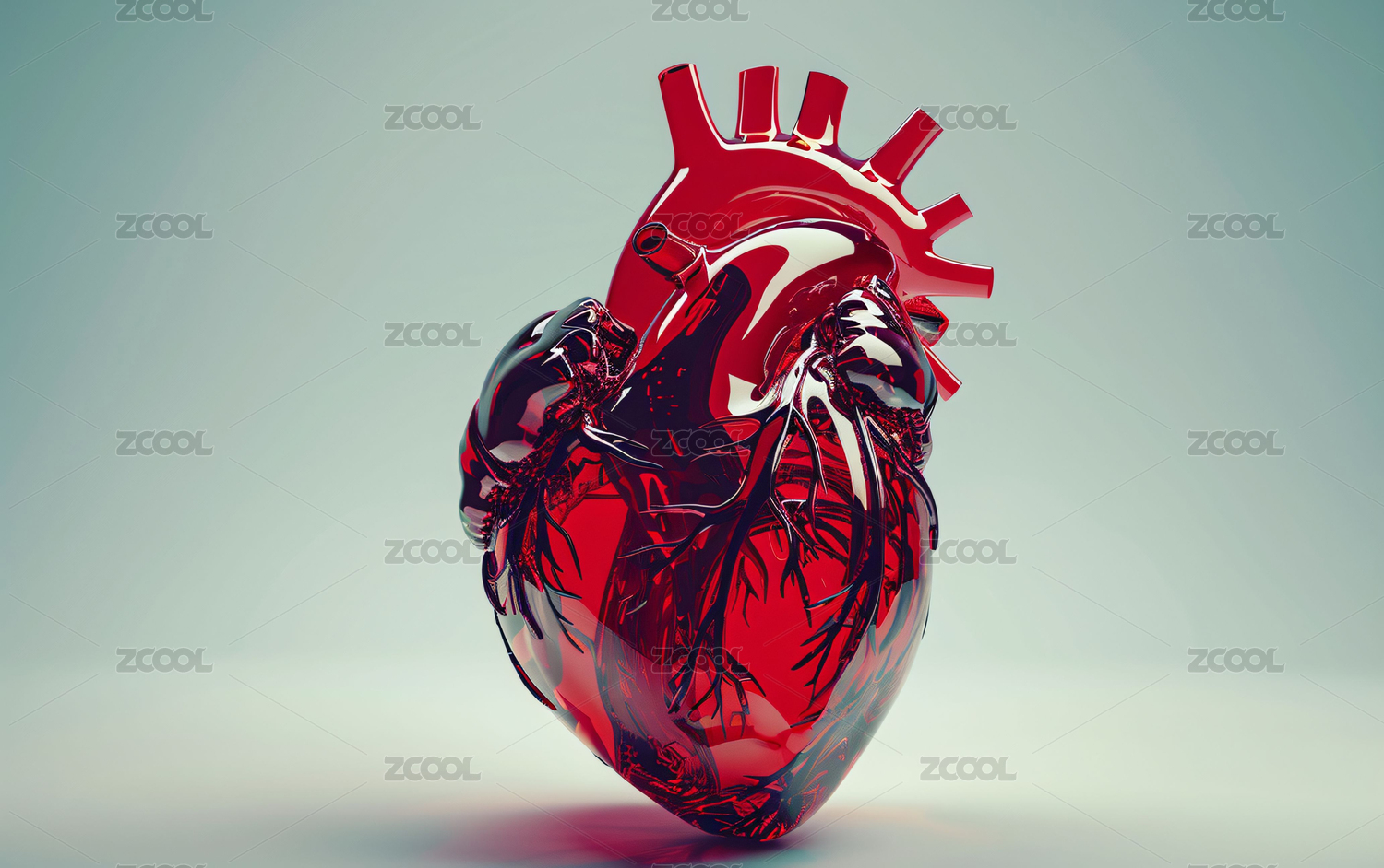 红色,医学,建模,三维,3D,立体,模型,健康,心脏,玻璃
