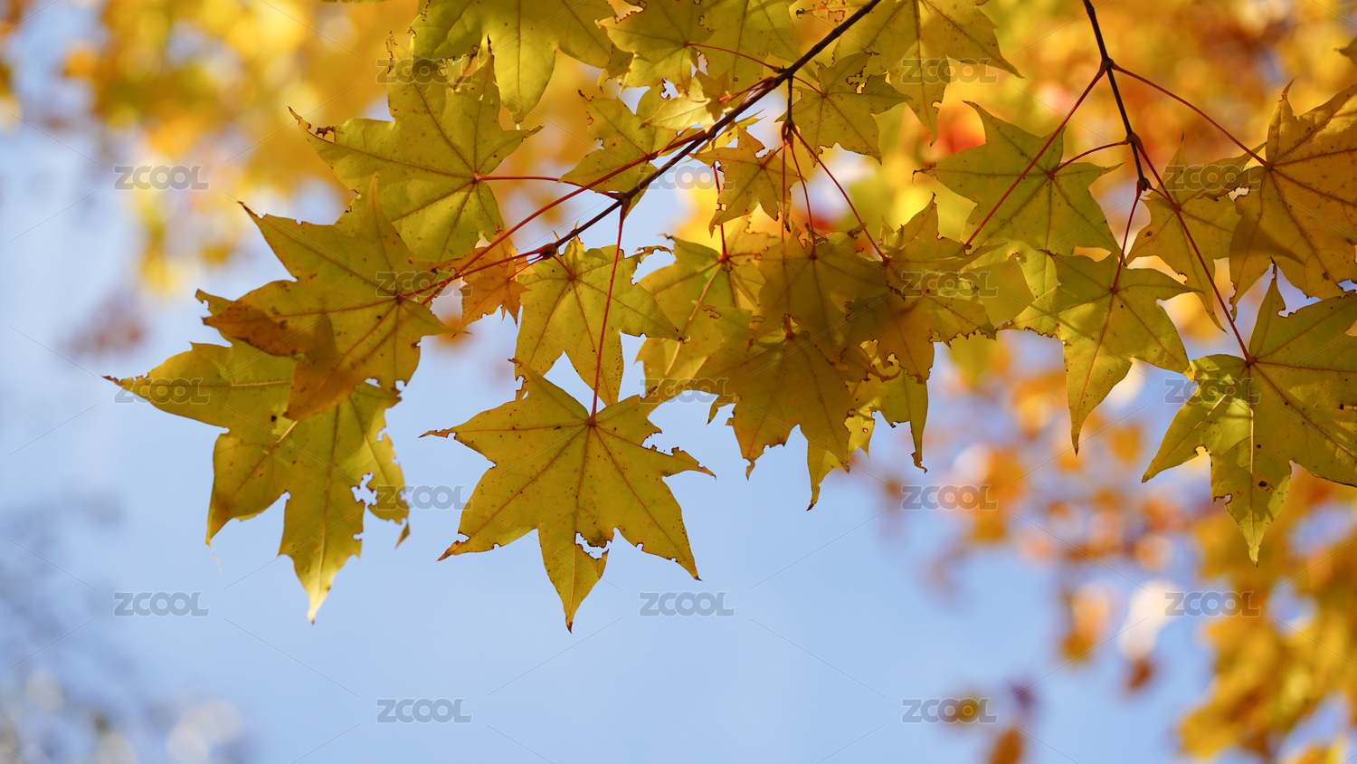 秋日阳光穿透枫叶美景
