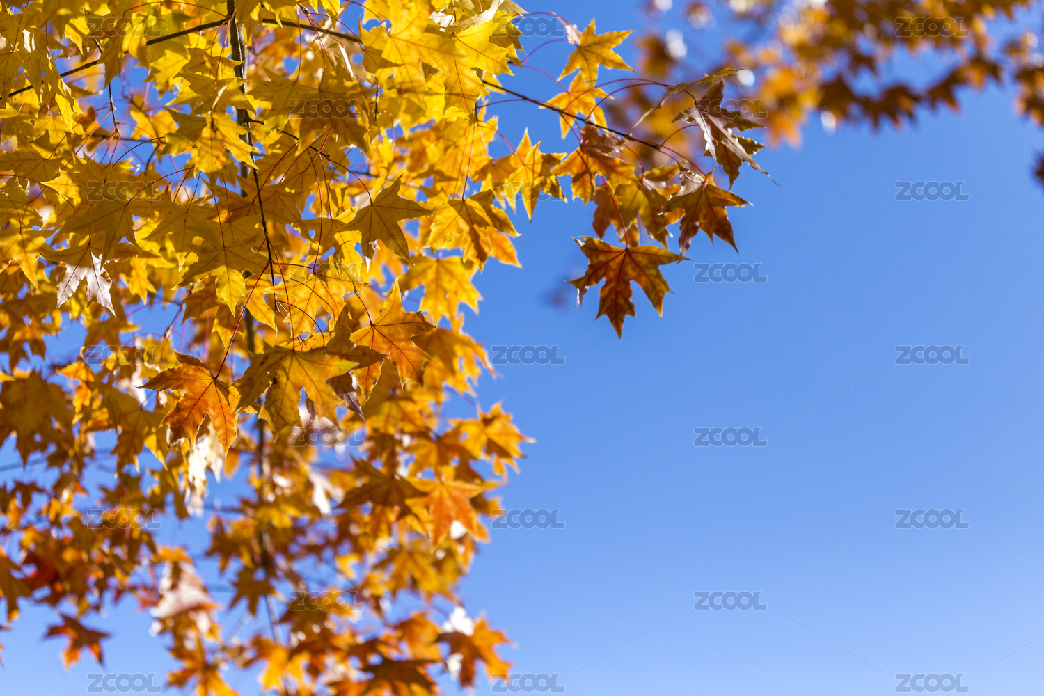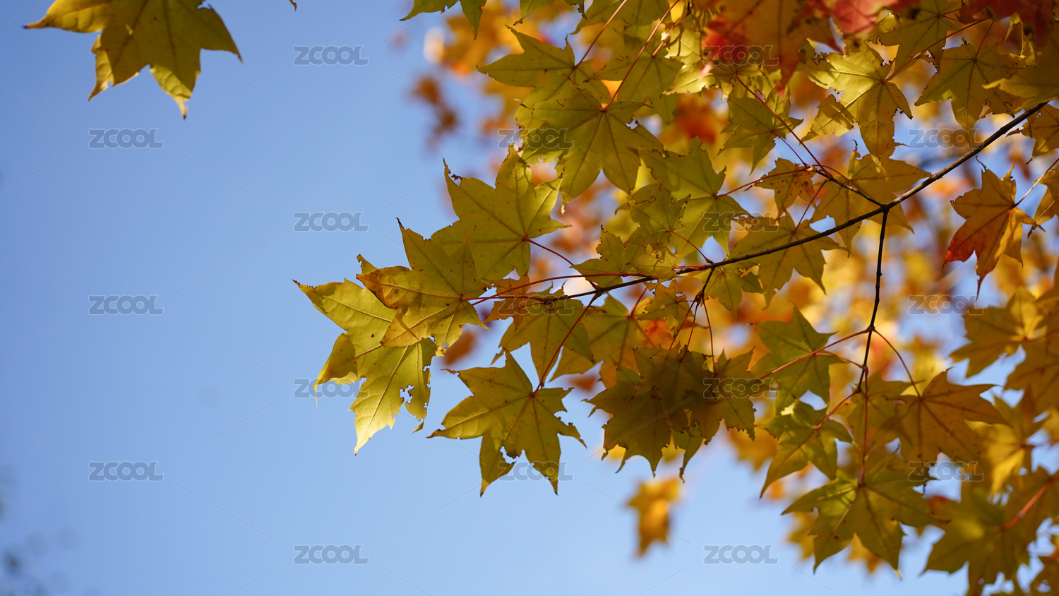 秋日蓝天映衬下的枫叶