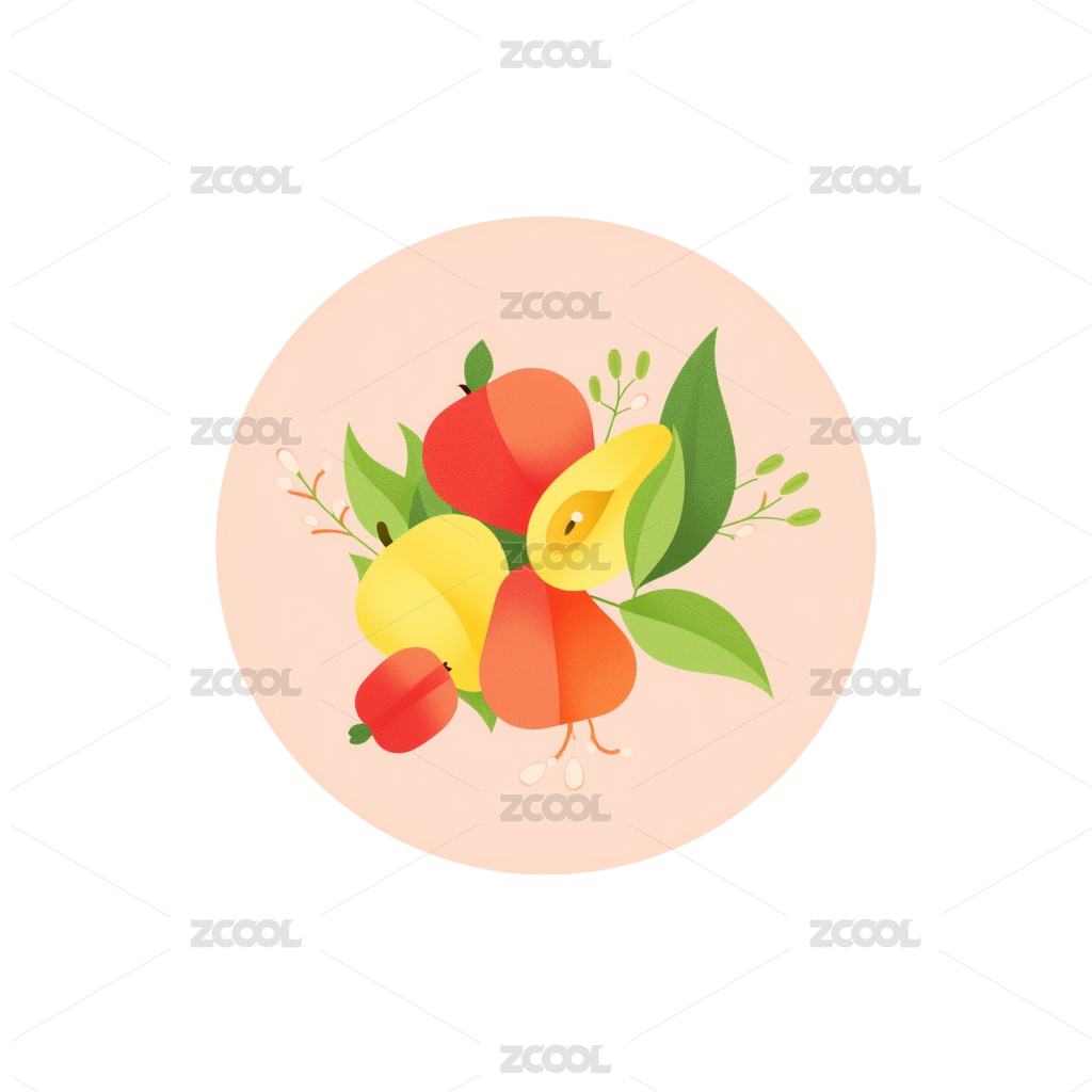 插画手绘两个桃子水果柠檬成熟好吃甜的食物