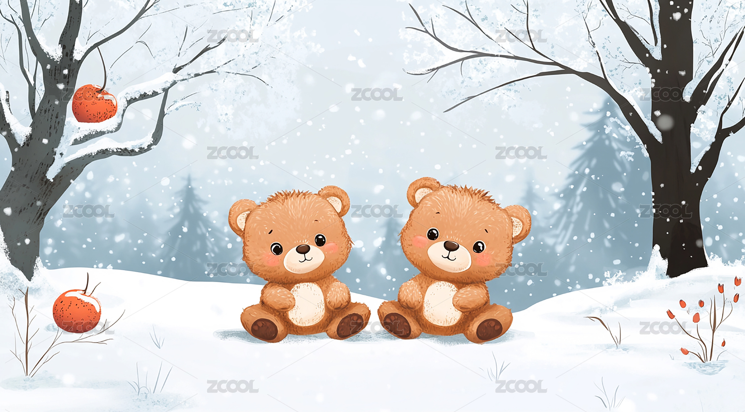冬天雪地里的小熊