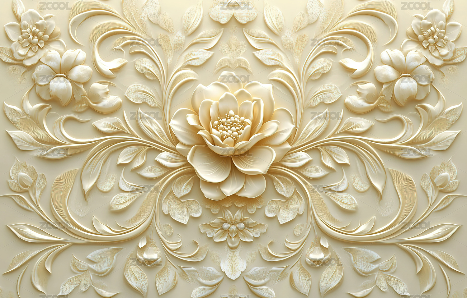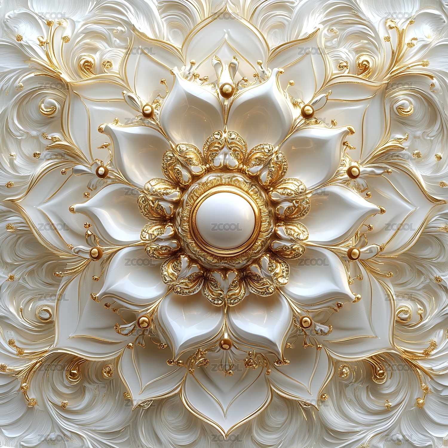 艺术,金色,白色,3D,鲜花,牡丹,抽象,几何,插画,装饰